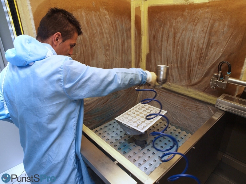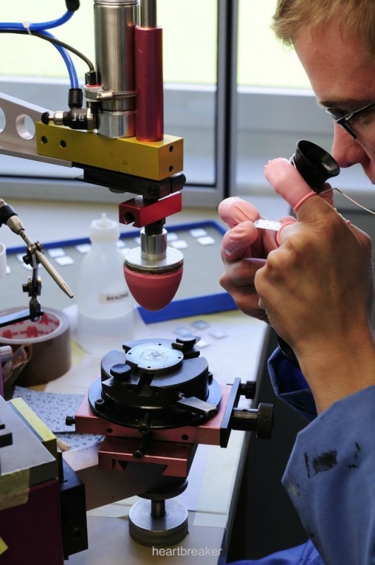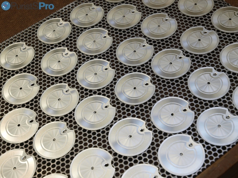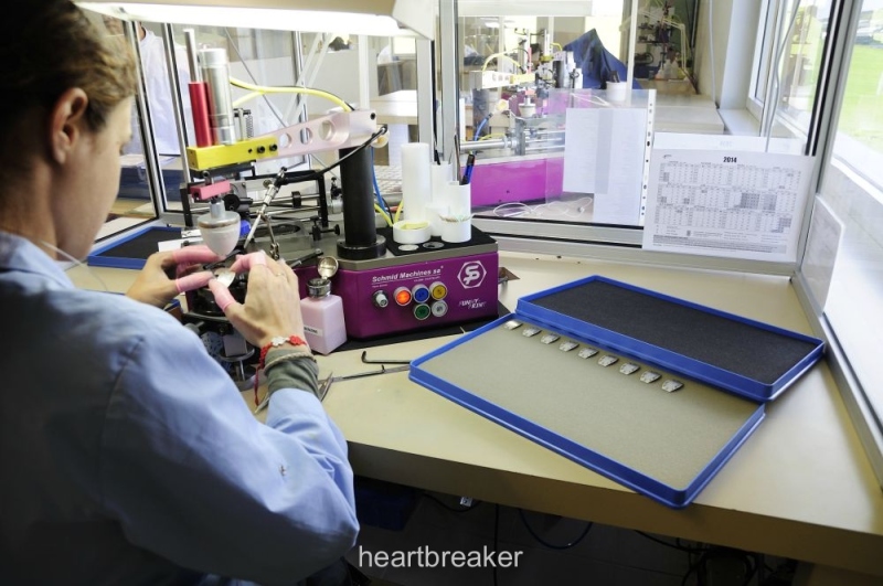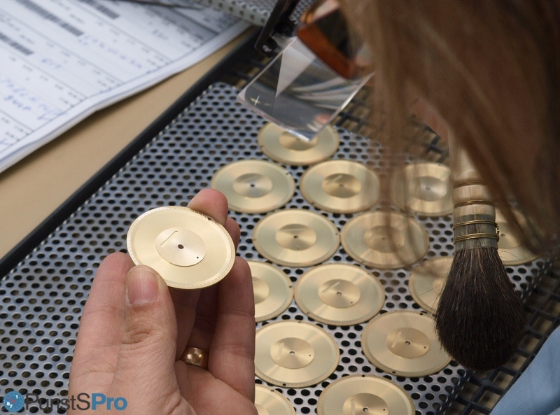 Initially, before any dial is further worked on, a quality inspector assures the integrity of the raw dials and – if needed, remove any residual dust from dial blanks.