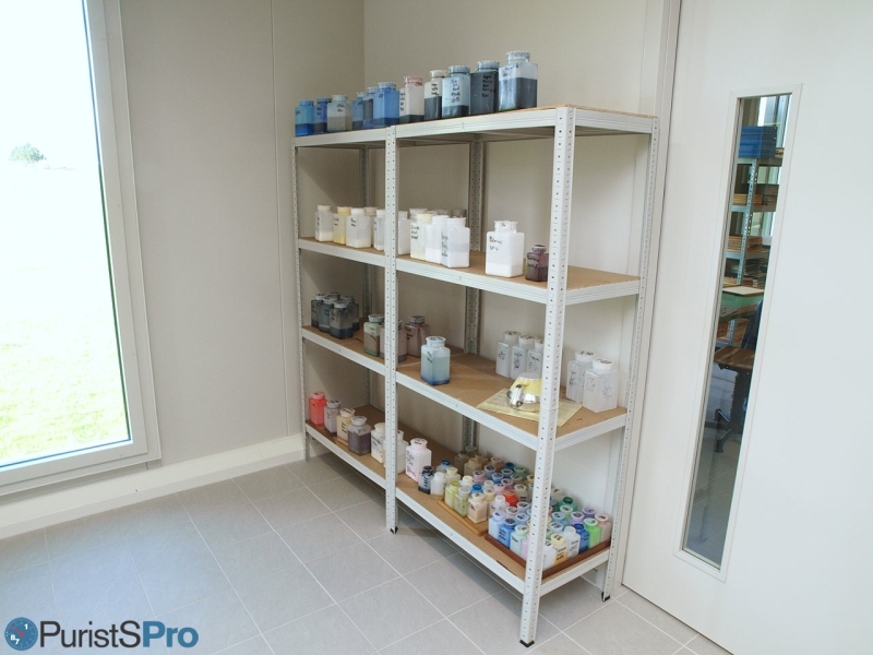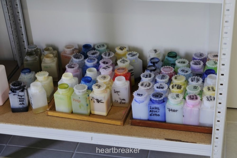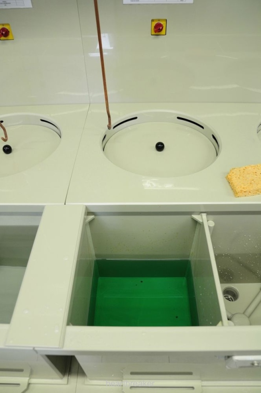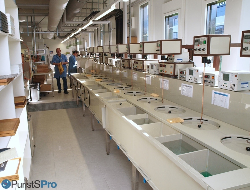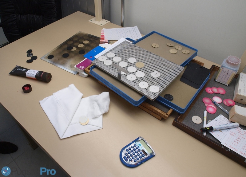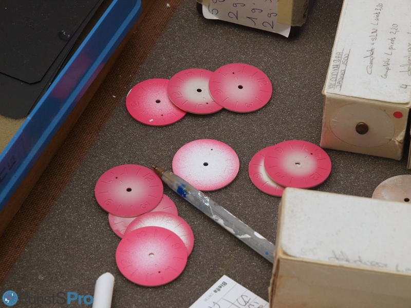 When we talk about colours, testing must be thoroughly and systematic. So there were test-benches where specialists prepare lacquer mixtures according to Pantone specifications, and try them out on test-dials.
