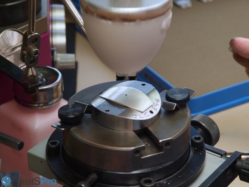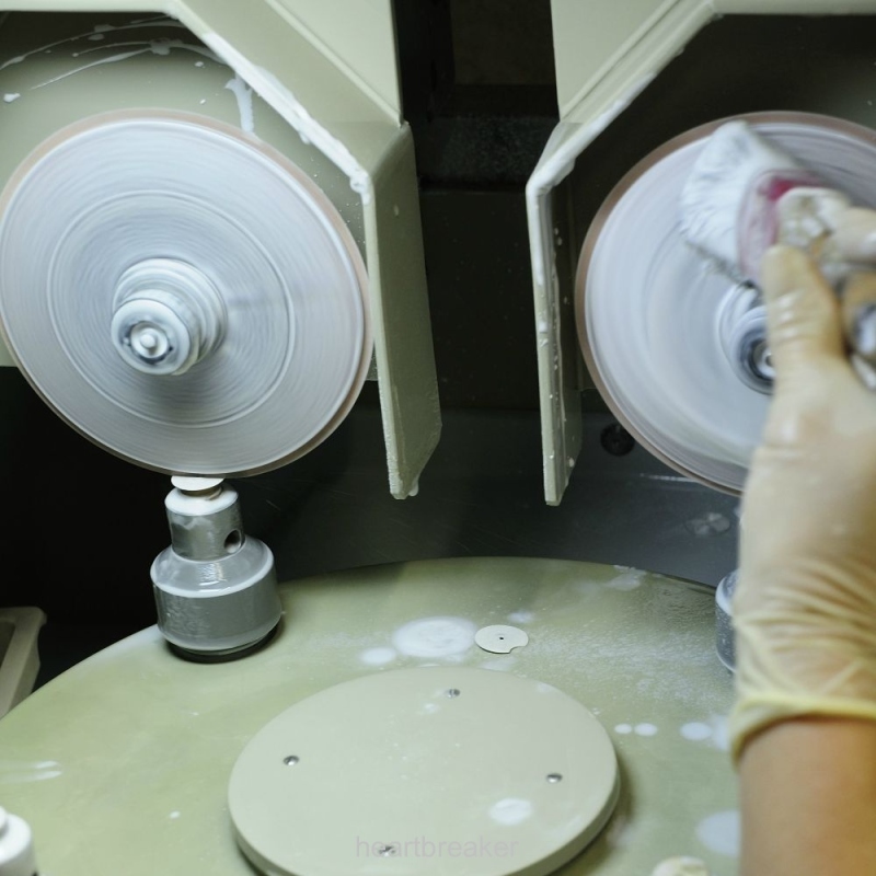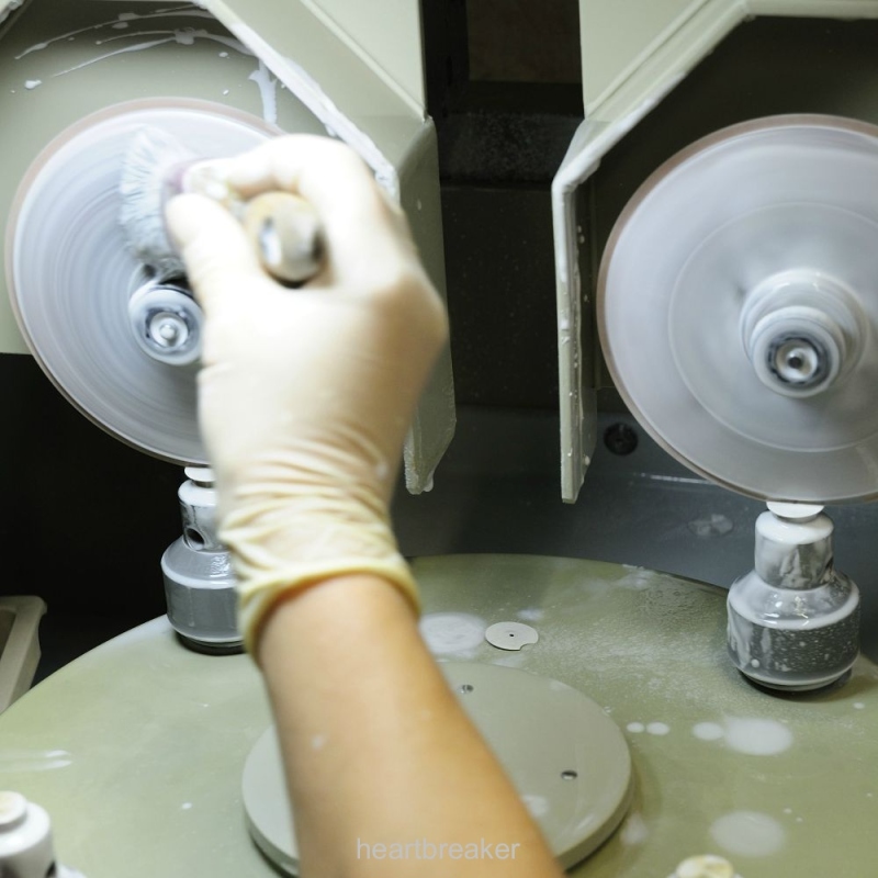 During the process, polishing mixture is constantly applied to guarantee a reproducible outcome.