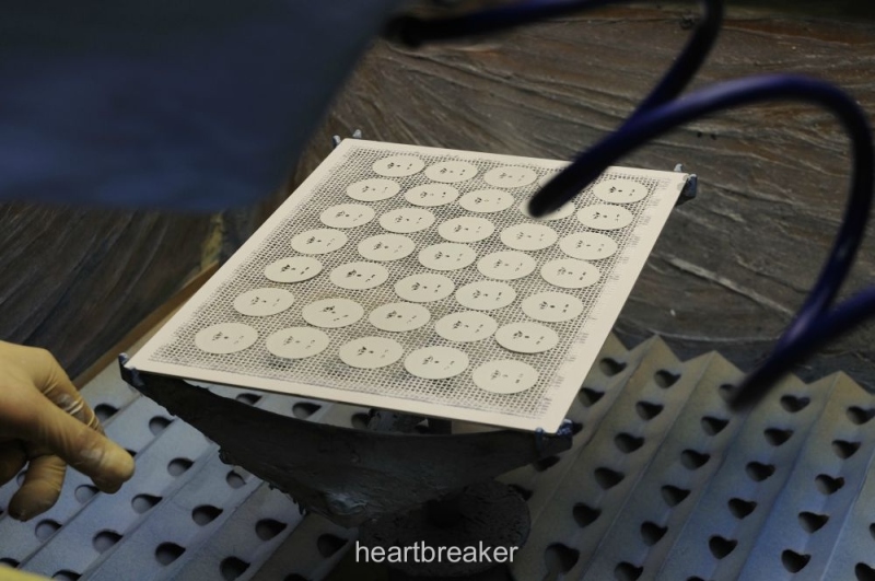The pattern to be printed is laser-edged into precious steel plates used as templates. The edging basically leaves tiny rims which retain paint that in turn is picked up by the silicone pad: