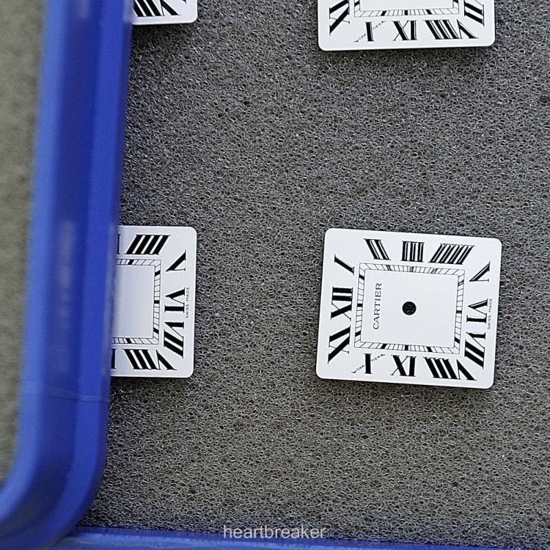 Both are essentially the same. Electroplated dials such as the Cartier one here receive a varnish whereas the initially mentioned coloured dials get their final colour through a layer of lacquer. Fehr can basically create any desired lacquer colour, and has all primary colour pigments, preparations and solvents in stock: