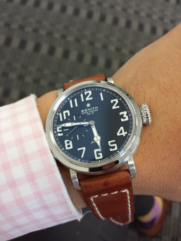 Pilot 40MM. Slim, great look, follows the trend of Zenith right now, size is true to the original, can dress up and dress down, Pilot look is great for all watches so has a cool style. I have a small wrist, most watches are second to last hole but I still wear 44mm - 45mm.