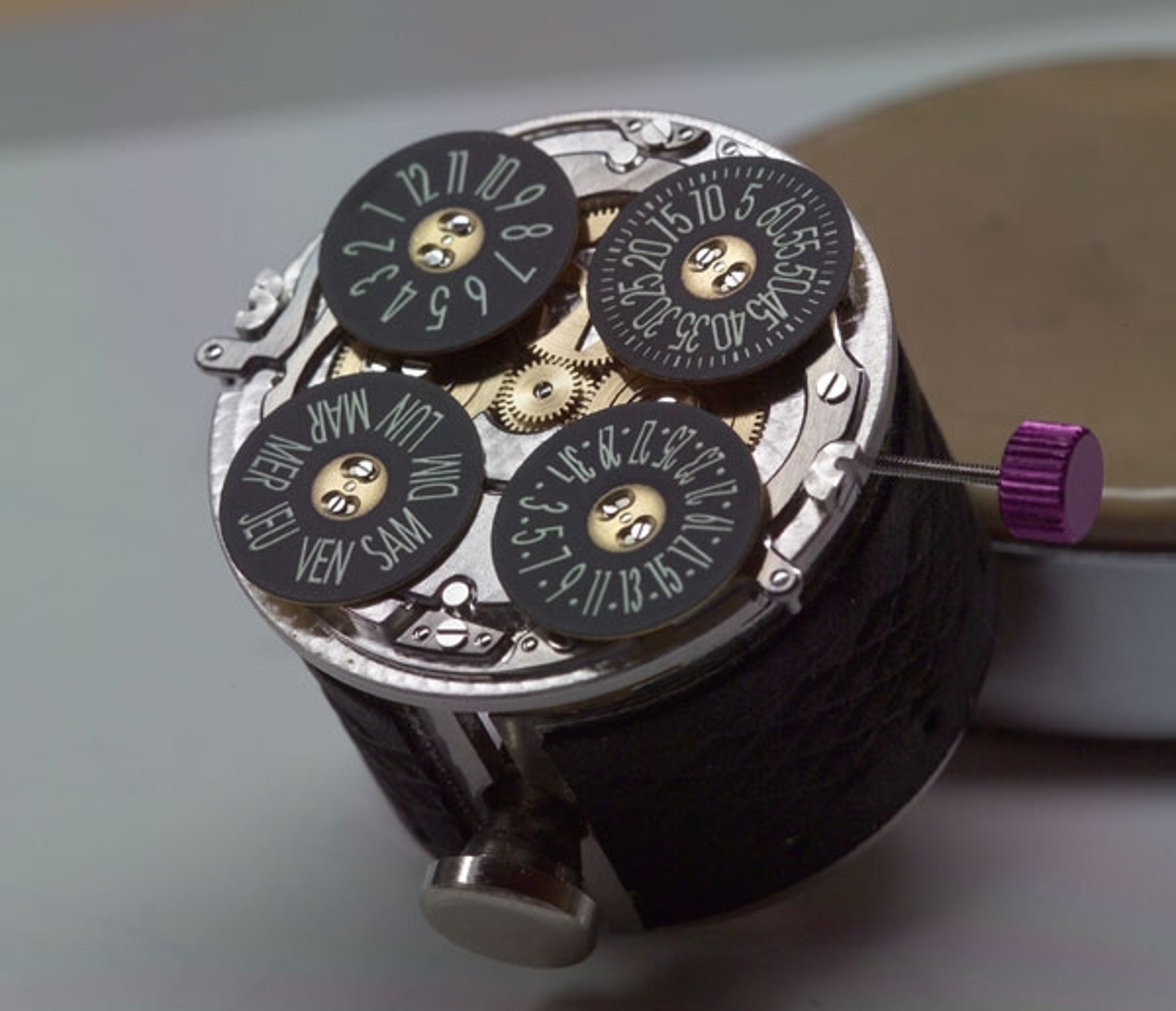 The poetic texts on each dial are from French writer Michel Butor (1926-2016).