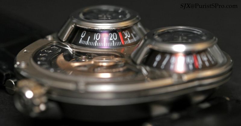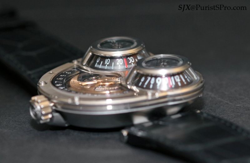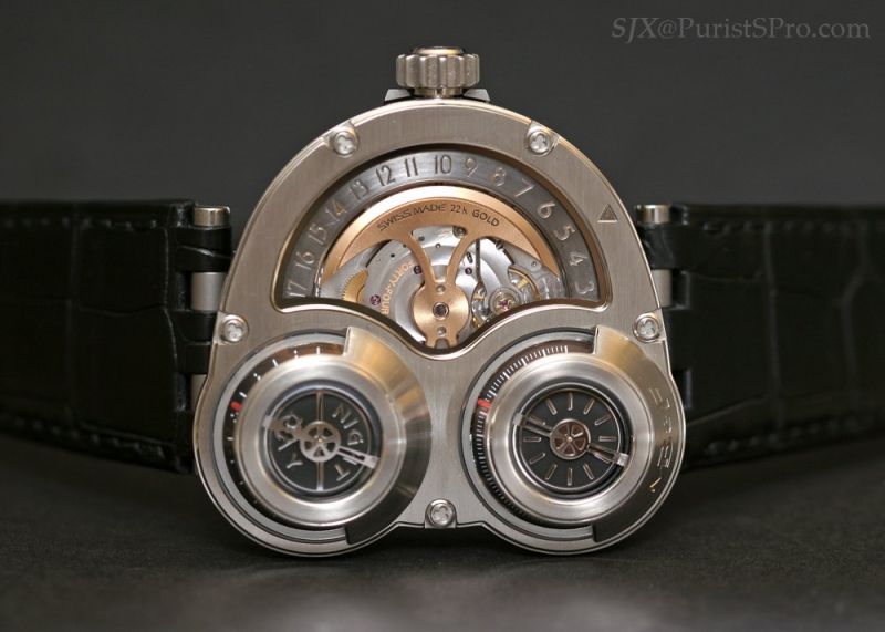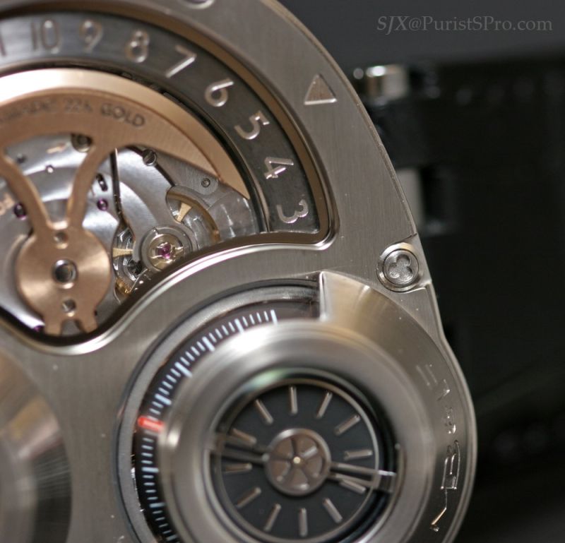 Then the HM2 was unveiled. I saw that watch in 2007, once again meeting with Max at the Swissotel in Basel, and I liked it immediately. It was clearly inspired by the HM1 in terms of the time display, but I very much preferred the design of the HM2. That being said the HM2 does not sit quite well on my wrist due to its shape and size; I have heard similar comments from others about the fit of the watch.