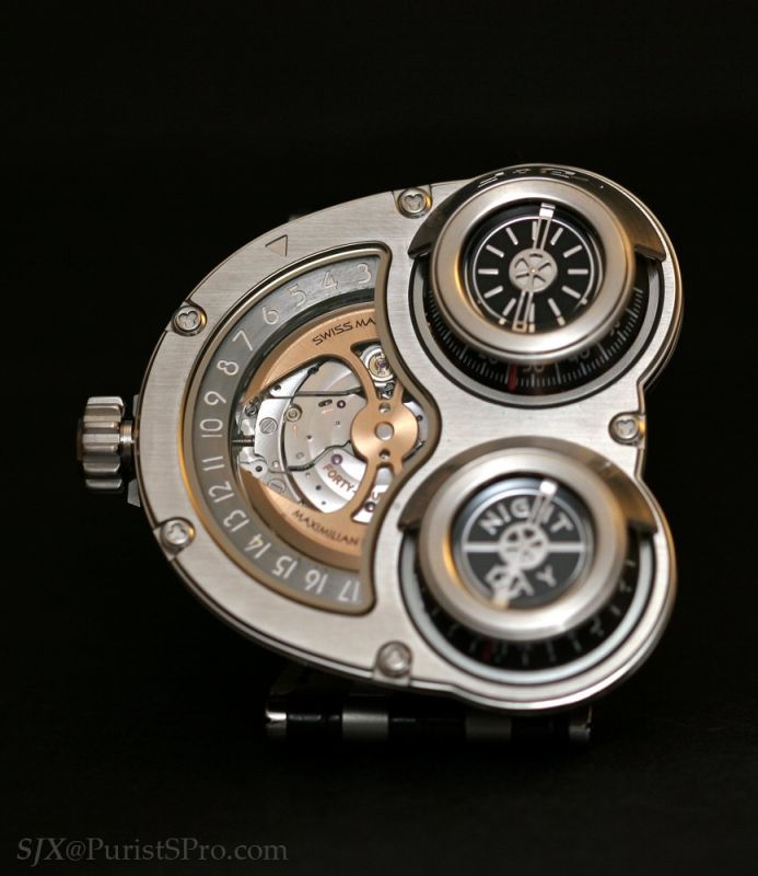 There are hints of the Vianney Halter Antiqua in its design – Max frequently cites the Antiqua as one of the most remarkable watches ever made – but where the Antiqua is Jules Verne, the HM3 is Star Trek. The HM3 is far more quirky and offbeat than any of the other Horological Machines. It is an attempt to be different, but the HM3 does not come across as trying too hard. In fact, I daresay the HM3 looks elegant, with sleek lines and polished edges.
