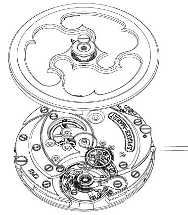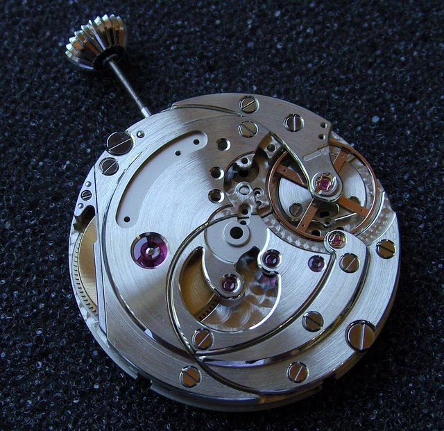 Turning the watch over allows you to see the "symmetric" winding weight inspired by the wheel of a topping off tool I?d seen in Peter?s workshop. I remember Peter saying that he'd wanted to avoid just adding an engraved weight to an ETA movement and he?s clearly been successful. The gold plated winding bridge shows off the fine workmanship of the rotor beautifully. The old fashioned winding crown feels terrific - it's almost a shame the movement is automatic.
