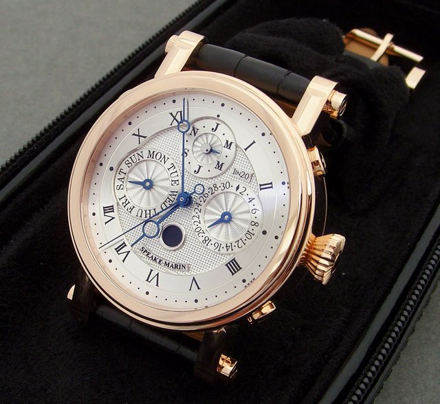 We were admiring my watch, and looking at Peter's own watch (a similar while gold version with the automatic plate beautifully engraved by Kees Engelbarts), when a jeweller walked in with a very interesting pocket watch. It had an English lever movement ? but with an external pointer allowing the time to be felt much like a Breguet Montre a Tact. Neither Peter nor George had seen an English watch in that style before and the watch was left for George to investigate more. It was just a hint of the variety of historic pieces Peter must have worked on in his time in Piccadilly
