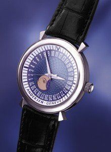 The Day disk turns slowly once a week inviting to enjoy the days as they pass. The date is shown at the edge of the dial on a second disk turning once a month. The day and date indexes are engraved on the saphire.