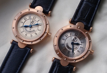 Indeed, this unique VH CLassic is fitted with an oxydized silver dial in lieu of the standard rhodium plated brass dial (though "standard" is certainly not an appropriate word for a Vianney Halter timepiece).