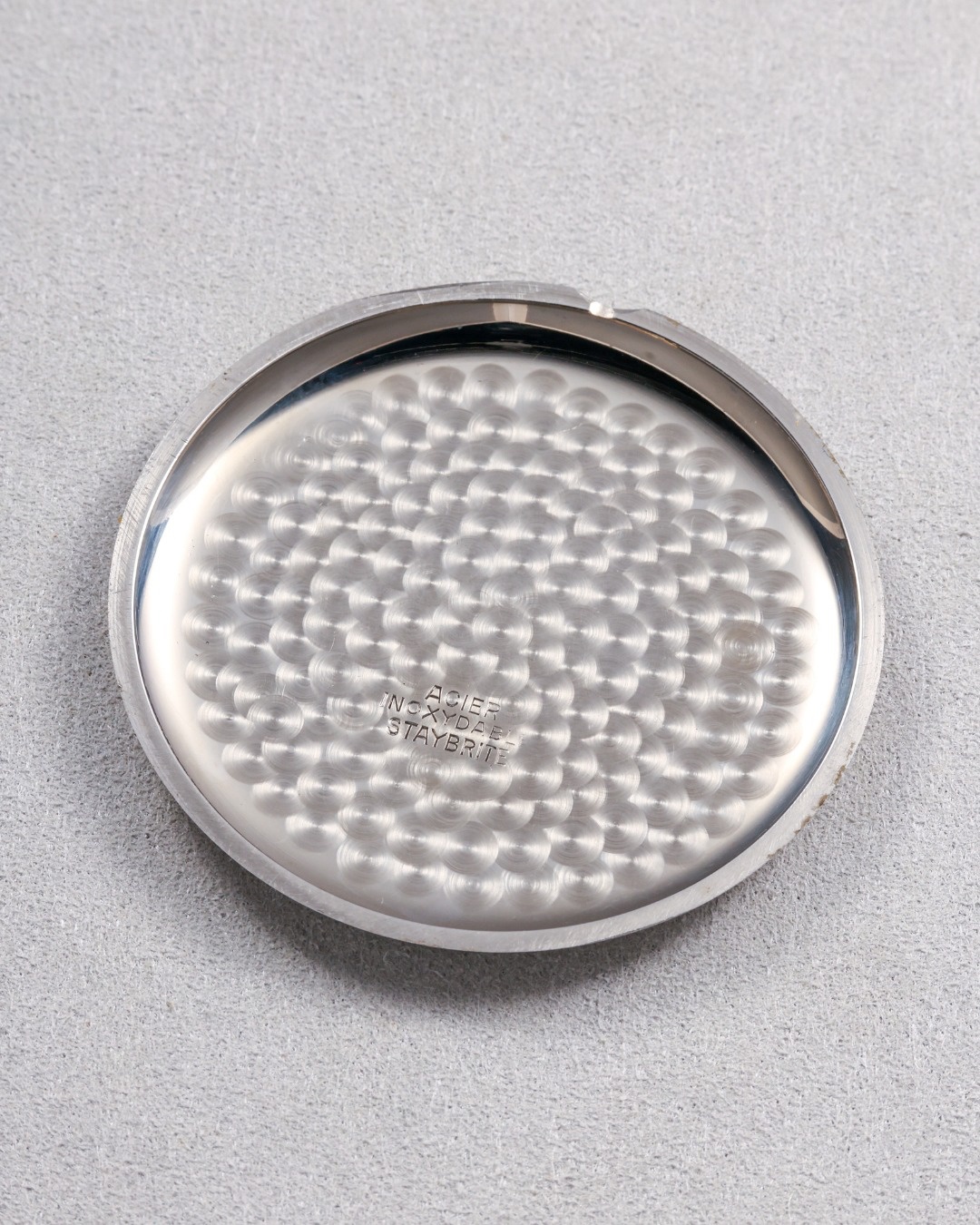 On the lower surface of the small seconds subdial, three concentric decorative rings are engraved with the coordinates of the observatories where the watch has been tested for certification: