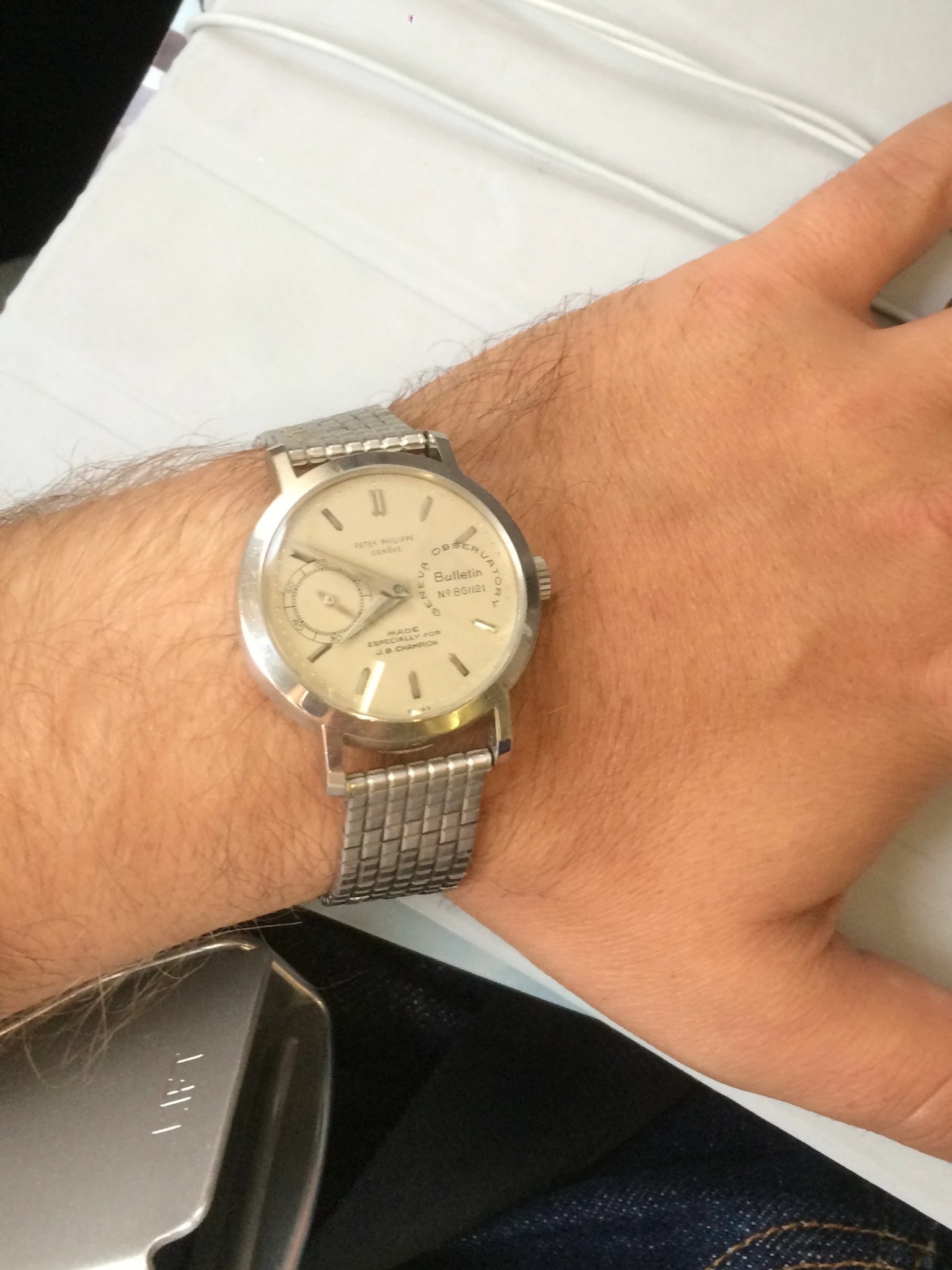 The watch with its platinum bracelet