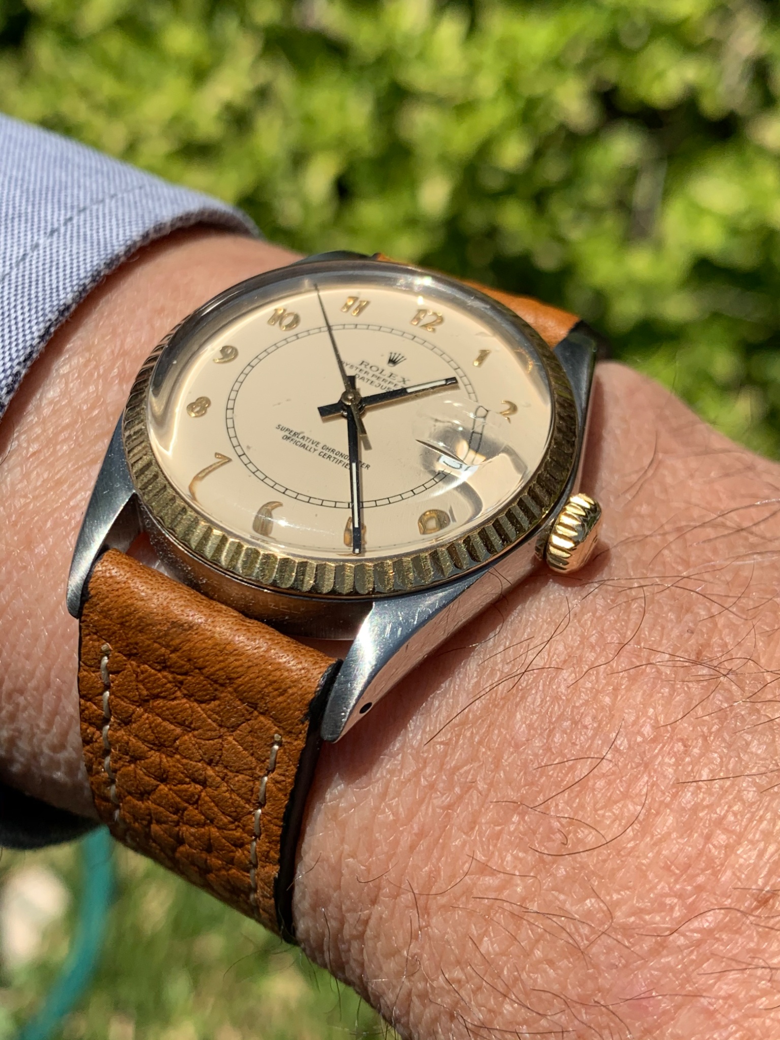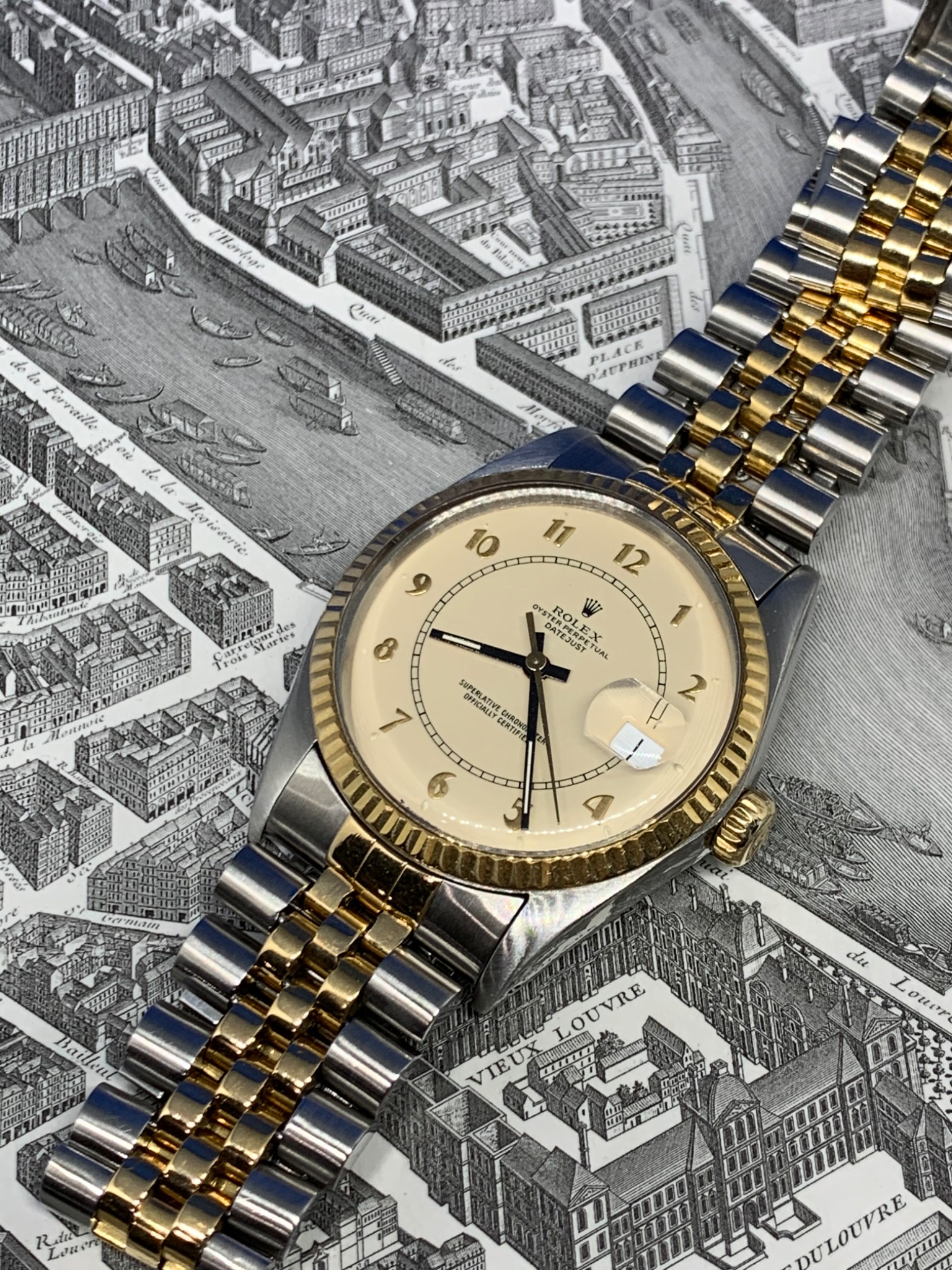 It is a reference 16013 circa 1986 with a dial that has turned creamy color.