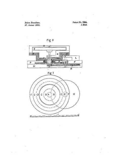 Bahne Bonniksen's original layout of the karrusell escapement seems to have the balance wheel 'E' in the center of the platform as can be seen from the drawings in the Swiss patent No. 7965 dated 27. January 1894.