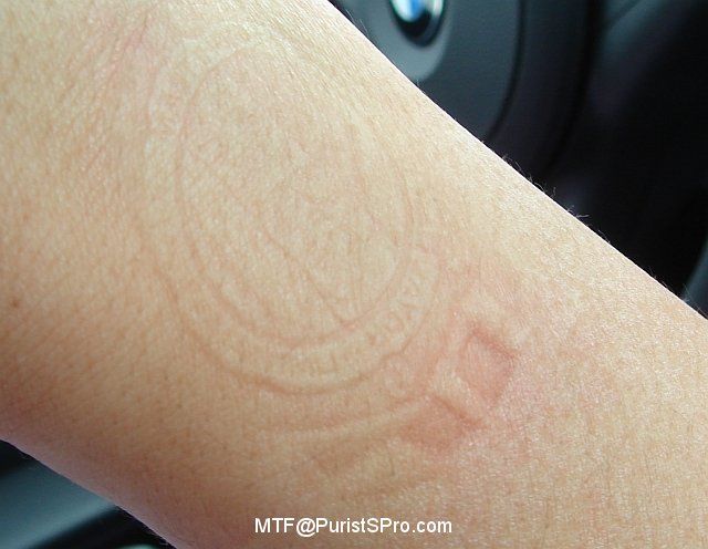 Here is a picture of your "master strap changer", or rather, one of his too-tight-deployant-clasp-on-wrist marks.