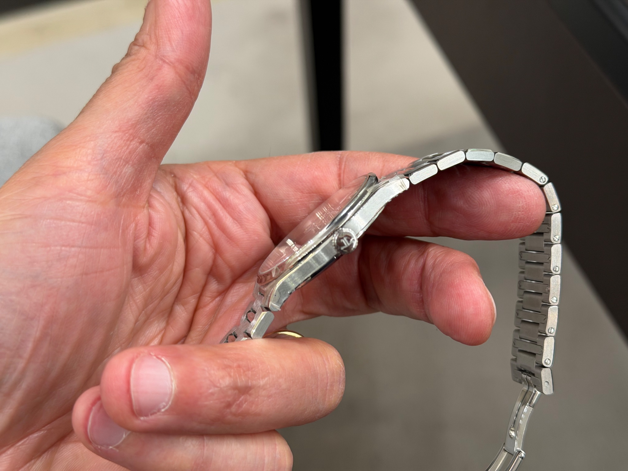 Although it is very nice looking in its own right, the 39 x 9.2 mm size didn't look and feel as nice on my wrist.
