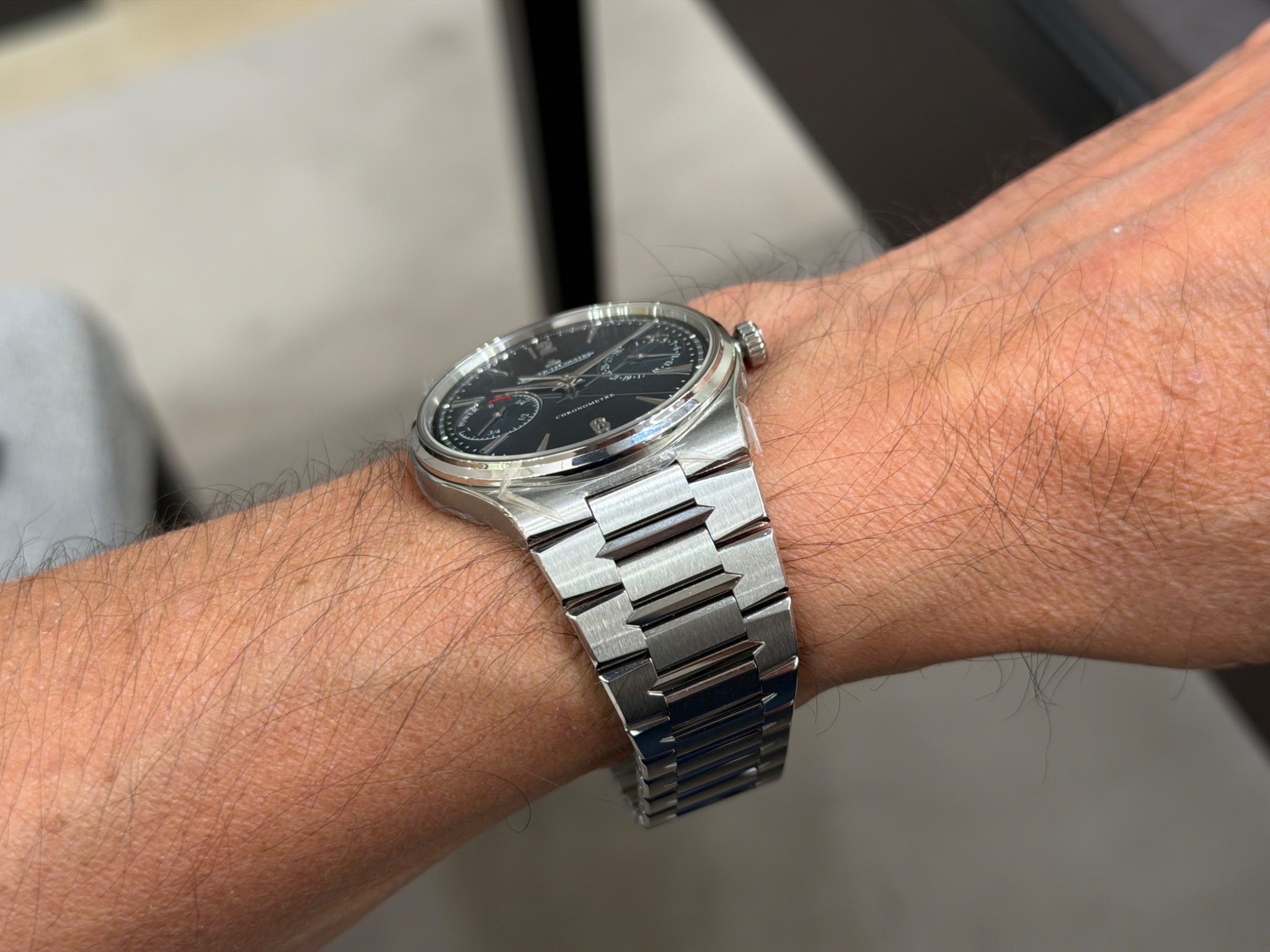 credit: Monochrome, Deployant & Jaeger-LeCoultreI was also able to try on the steel Date Power Reserve version ref. Q4168120.