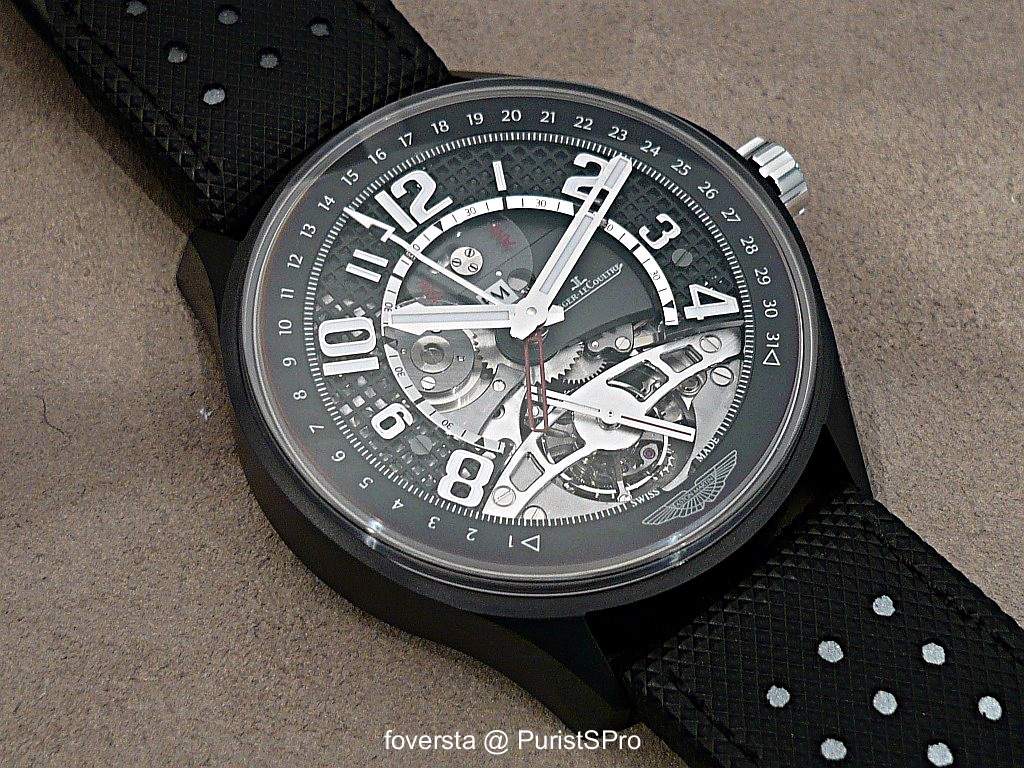 1/ This is the third opus born from the Aston Martin and JLC collaboration, and certainly the highest one, horologically speaking, as it houses the Tourbillon in a sporty watch, with the addition of a 2d time zone.