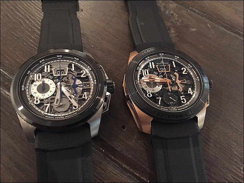 The two watches you have extra pictures of, extreme lab model? Are they the same watch with different case material? If so wondering about your thoughts on why to have two of them. I have done close to the same thing, having two different brand chronographs both with Zirconium oxide ceramic cases and similar dial layouts. I was asked the same question, why have both as they are so similar. For me the answer was I love the case material and chronographs. With your two watches do you prefer one over the other or just wear them in different situations? Thanks for sharing your pictures of a very nice collection.