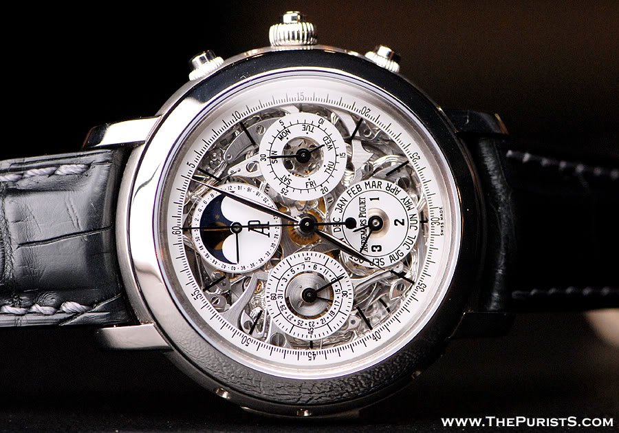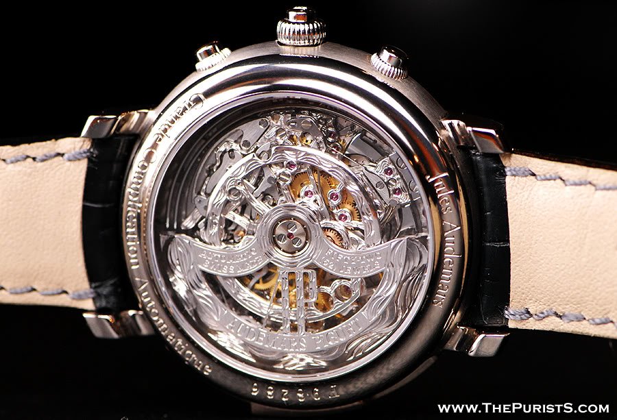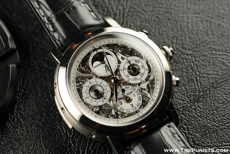 Here's a pic of a skeletonized AP grand comp which has perpetual calendar, so thought I'd throw this in the mix. I took these pics as our past AP GTG in Nov '07. Below are also some other skeleton AP's for your enjoyment!