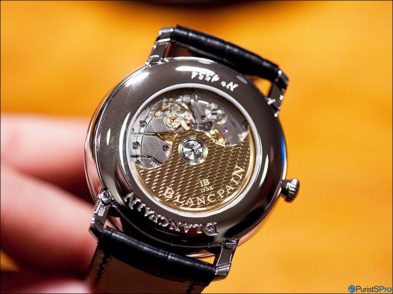 A closer look spots two important details which collector certainly can appreciate: Blancpain's proprietary (and very practical)