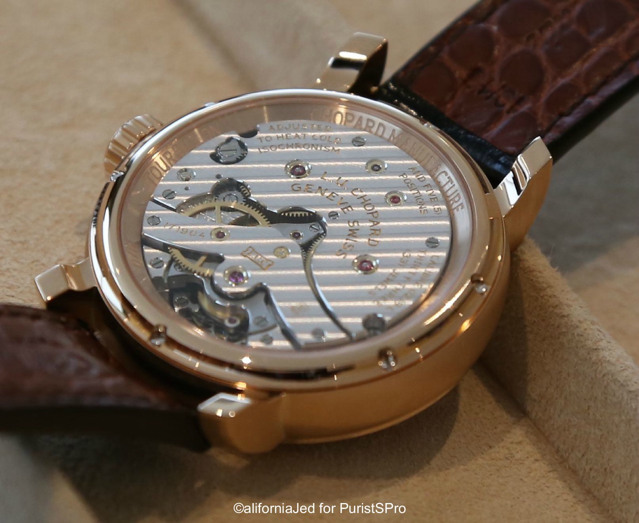 L.U.C Calibre 02.19-L1 is an evolved and 0.6 mm slimmer version of the 02.01-L movement. Chopard thereby leaves more room for the enamel dial that is naturally slightly thicker than the average. This exceptional calibre powers a tourbillon at 6 o’clock as well as a nine-day power reserve. The tourbillon bridge features only two attachment points compared with the usual four. Delicately open worked and pared down to essentials, it is also meticulously chamfered and satin-brushed to set the crowning touch to the movement finishing.