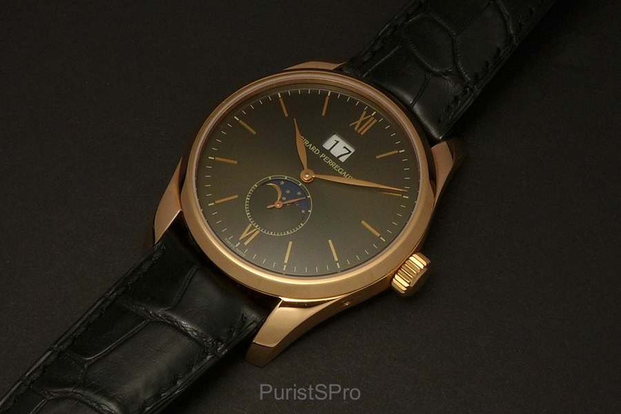 The focus is really on the complications! The Large Date overpowers the Girard-Perregaux logo and the sub-second with the golden moon face gives the dial the perfect harmony a classic watch should have.