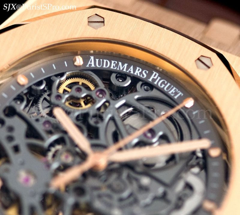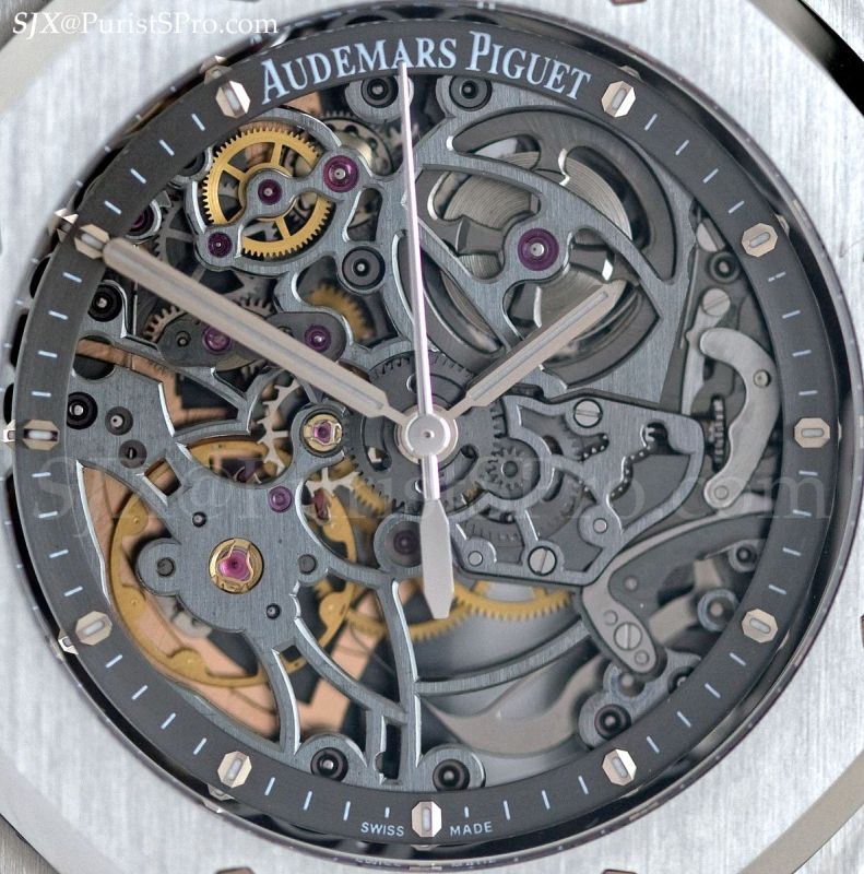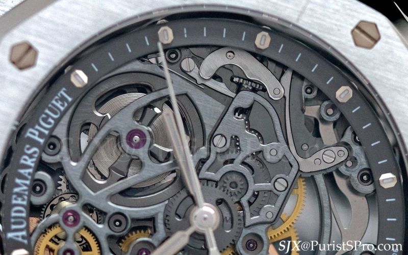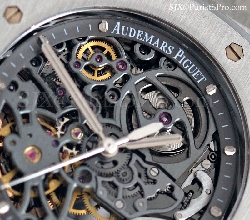 Rounding off the Royal Oak range is another watch that’s well worthy of note, an automatic skeleton based on the 15300. This watch is strikingly different from past iterations of the Royal Oak skeleton which were mostly skeletons with the fussy, baroque decoration that is usually found in skeleton watches.