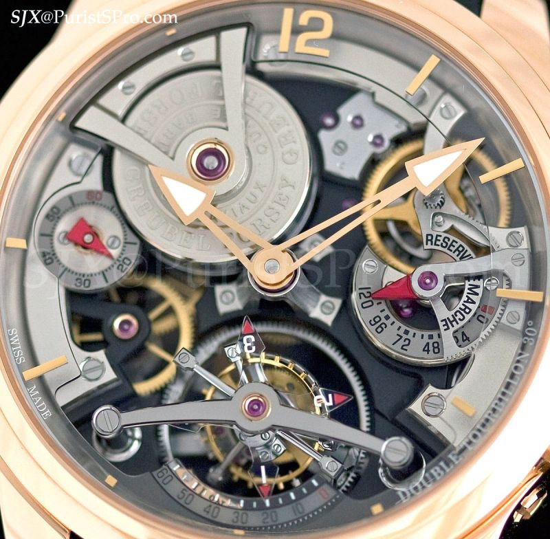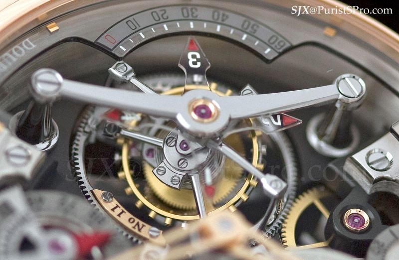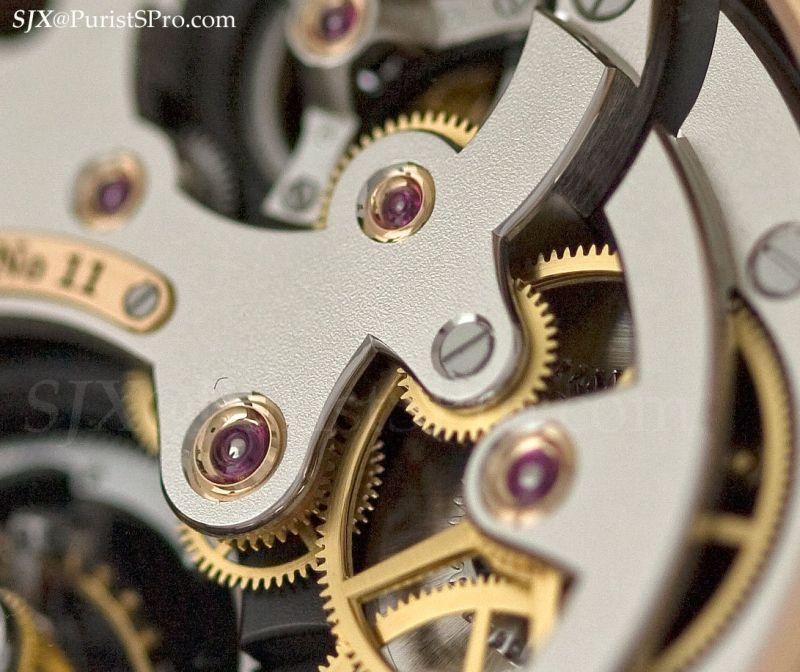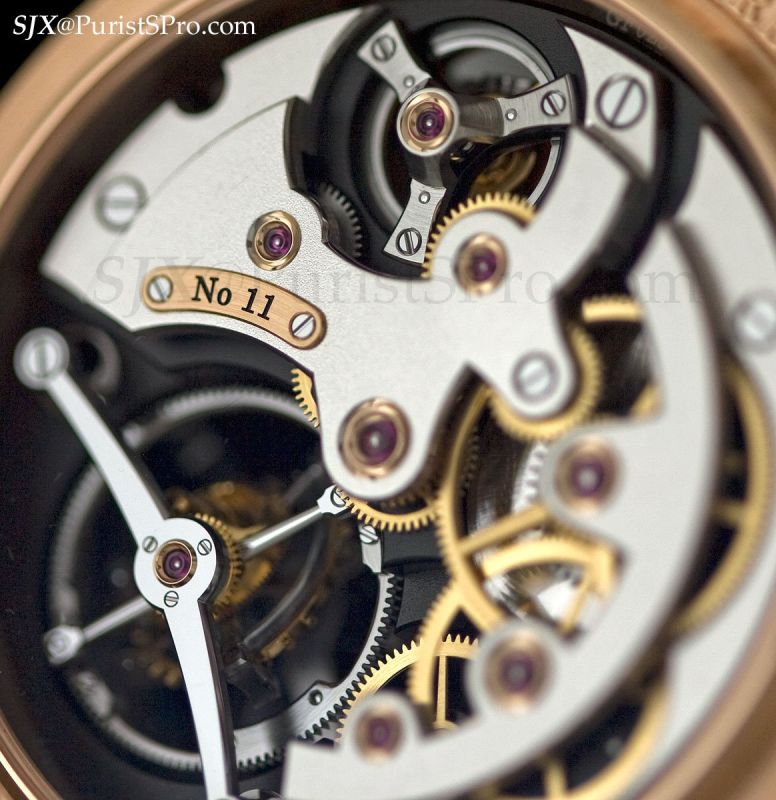 The second remarkable piece shown was the rose gold version of the Double Tourbillon Technique which was originally launched in white gold. Double refers to the twin axes of the tourbillon.