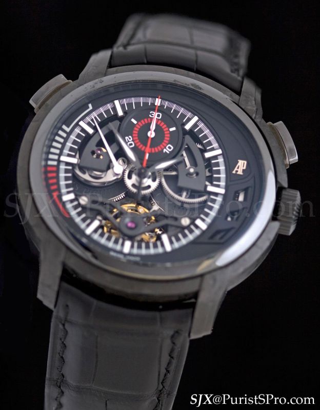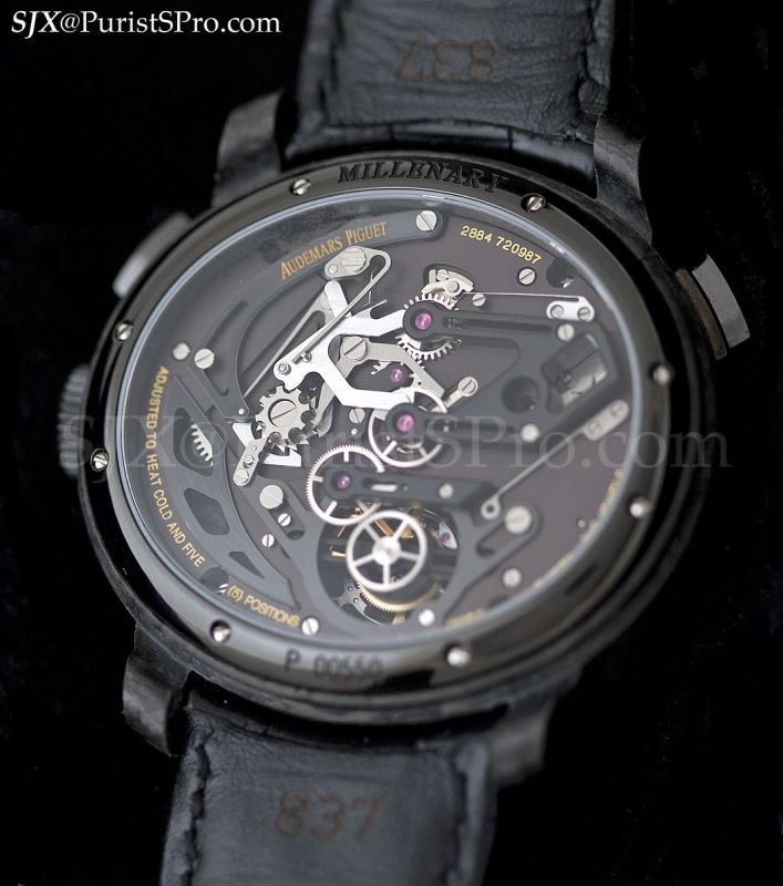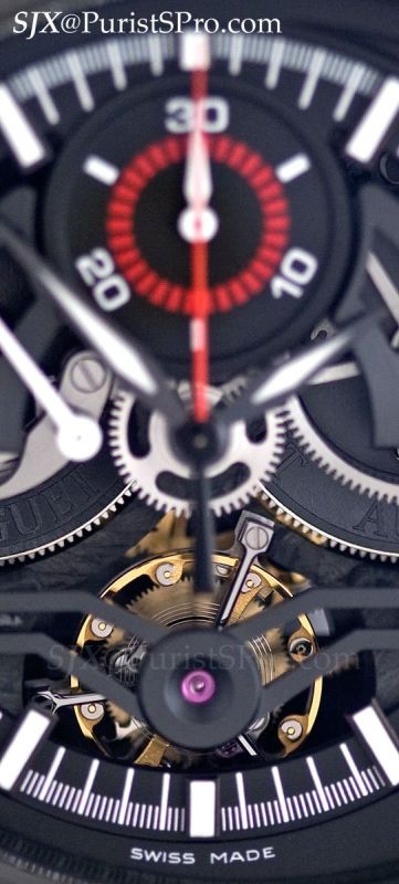 Now we come to the piece de resistance of the Millenary line, a tourbillon chronograph housed in a forged carbon case with a ceramic bezel and pushers. The Millenary Carbon One was launched and delivered late last year though it is officially part of the 2010 collection.