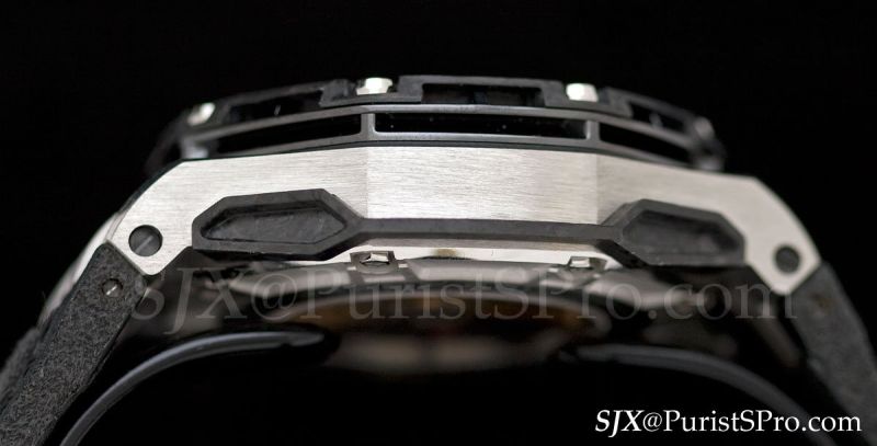 Unsurprisingly, the movement features bridges made of blackened steel or eloxed (meaning anodised) aluminium and a carbon fibre base plate. AP also touts its “rapid rotation twin-barrel system” which is also found in other Renaud et Papi tourbillon movements. Most of what comprises this watch, inside and out, has been used in prior models from AP or Richard Mille in one way or another; a similar movement was used in the Millenary Maserati MC12 of a few years back. But the Carbon One is nonetheless a sharp looking watch.