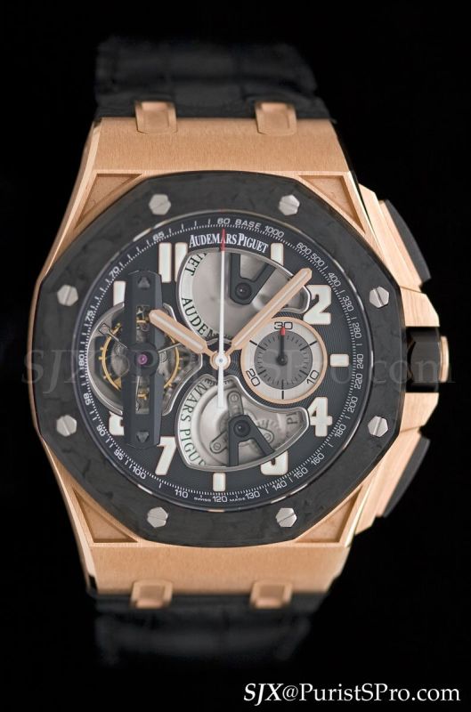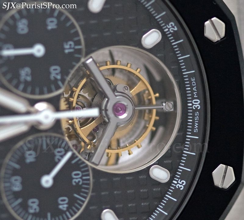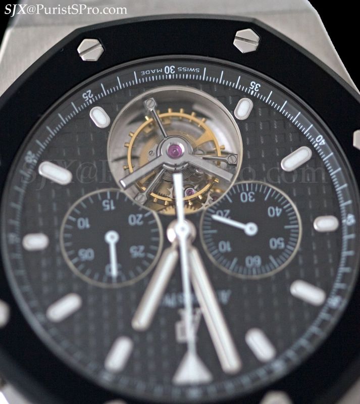The Royal Oak Tourbillon Chronograph is now available with a rubber-clad bezel like the Offshore Rubberclad, though this is a Royal Oak and not an Offshore.