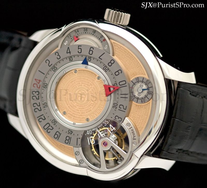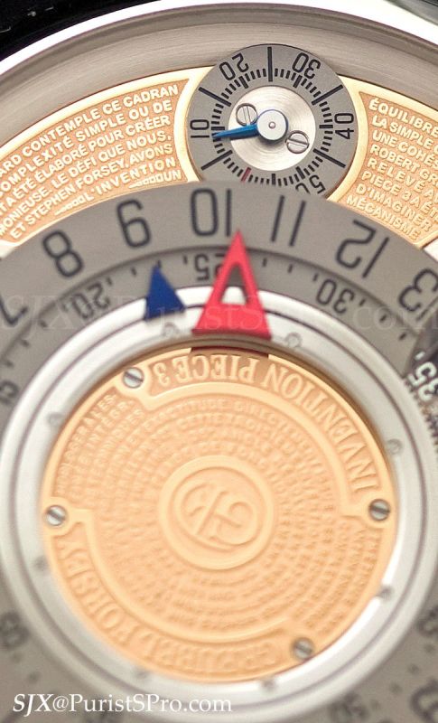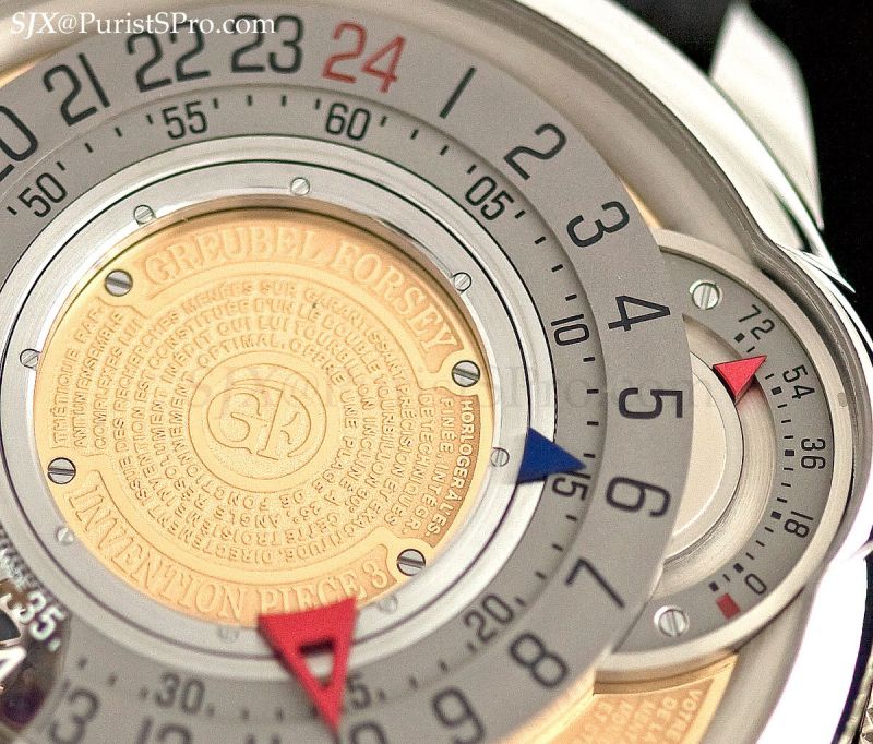 Lastly, the Invention Piece 3 was presented in a platinum case. This is actually a variant of the Tourbillon 24 Seconds Incline, clad in a wholly different dial and with a 24 hour time display instead of the usual 12 hour.