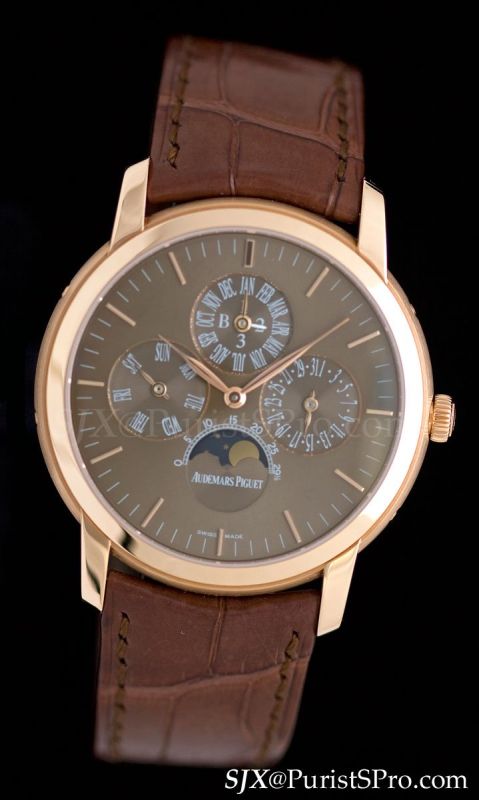 The classical Jules Audemars line received several new models as well. All of them are subtle, elegant watches. The first is an ultra-slim automatic containing the famous cal. 2121 first used in the 1972 Royal Oak and now a workhorse base for many AP watches.