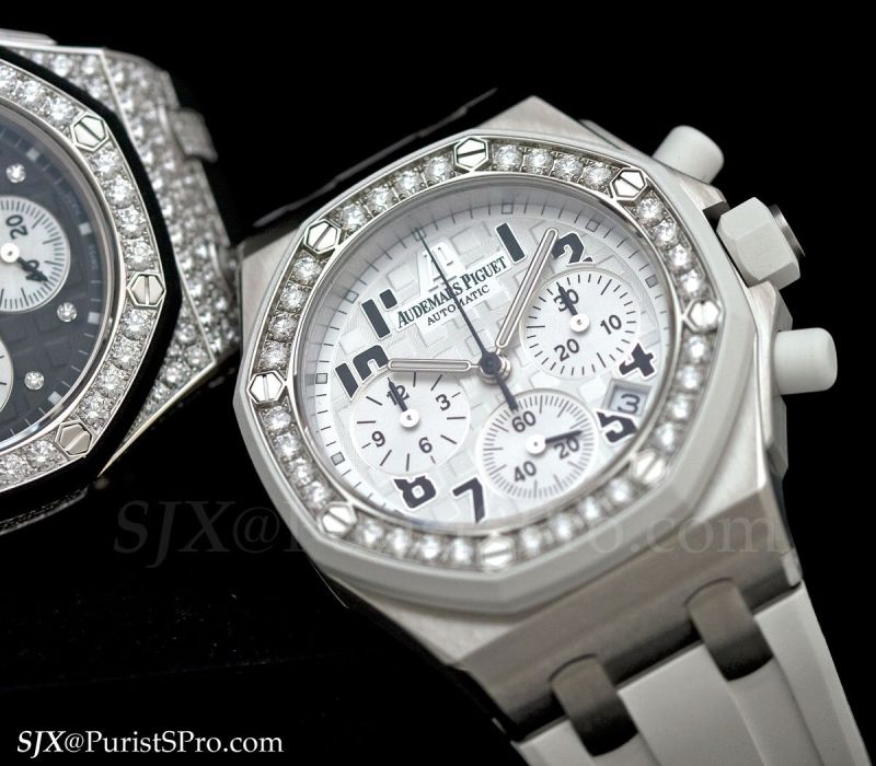 On the other hand the Royal Oak Dual Time is now available as a ladies’ watch with a diamond set bezel.