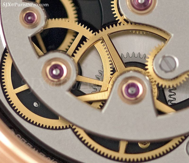Interestingly Lange did not present any new ultra-complicated movement, instead the primary new calibre for 2010 is the L021.1 of the new Lange 1 Daymatic. The movement is new and not based on the Langematik. It has a 50 hour power reserve and Lange’s in-house balance wheel and hairspring.