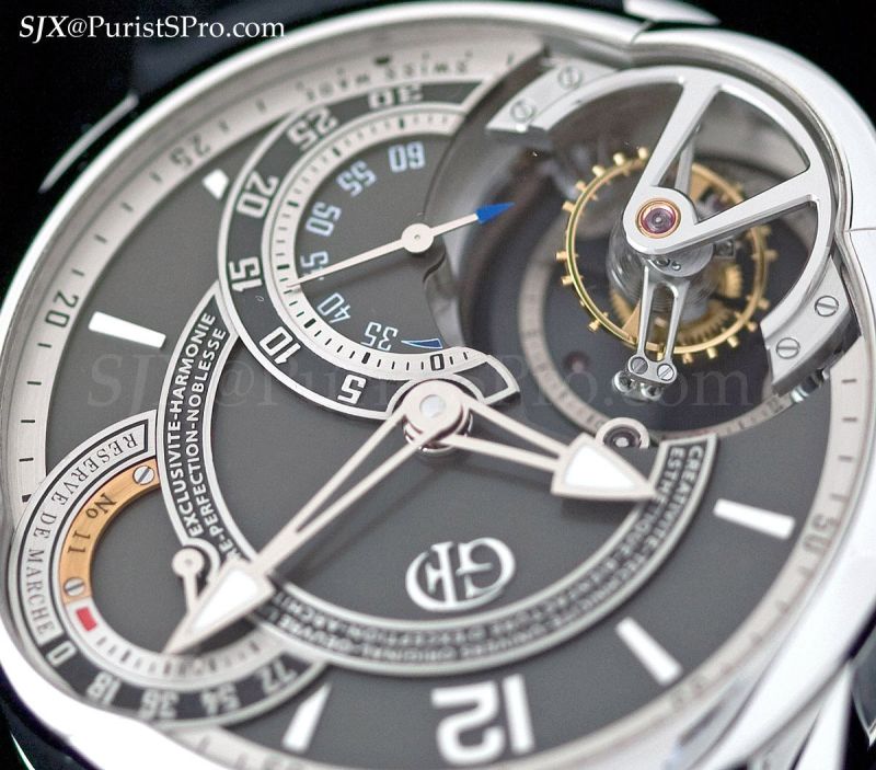 GP has made so many variations of the Three Gold Bridges tourbillon I’ve lost count. Yet it remains iconic because it is visually stunning and representative of the brand. And so predictably the flagship new product for 2010 is another variation of the celebrated Tourbillon with Three Gold Bridges.