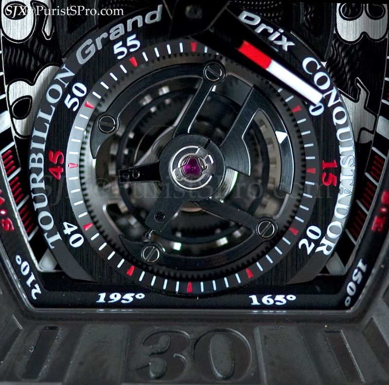 Another new release is the Conquistador Grand Prix tourbillon, contained in a case crafted from titanium and Ergal, an extra-hard aluminium alloy, though it is also available in gold.