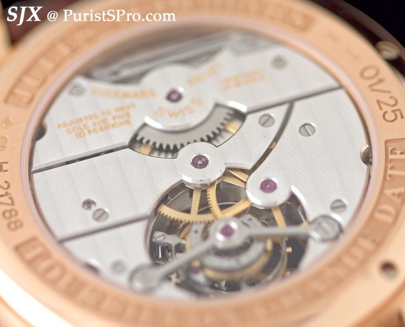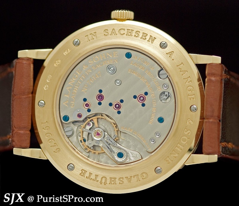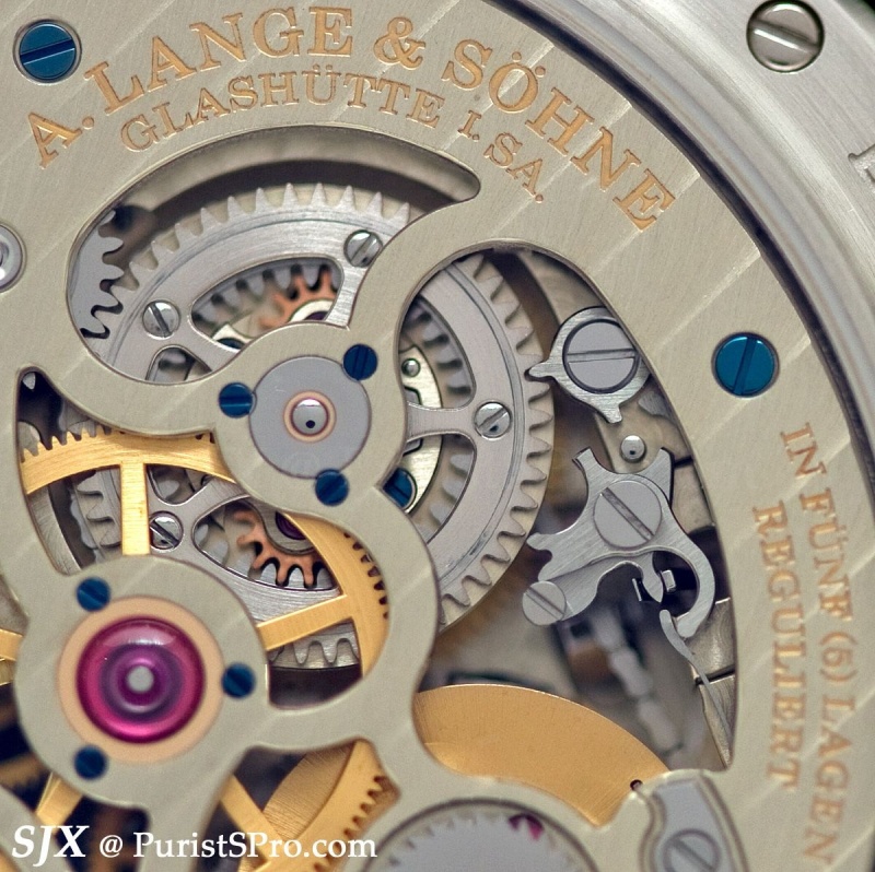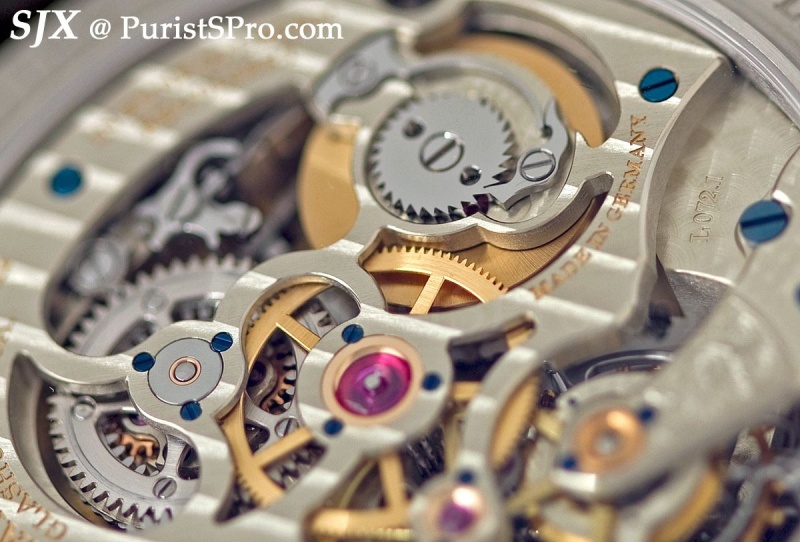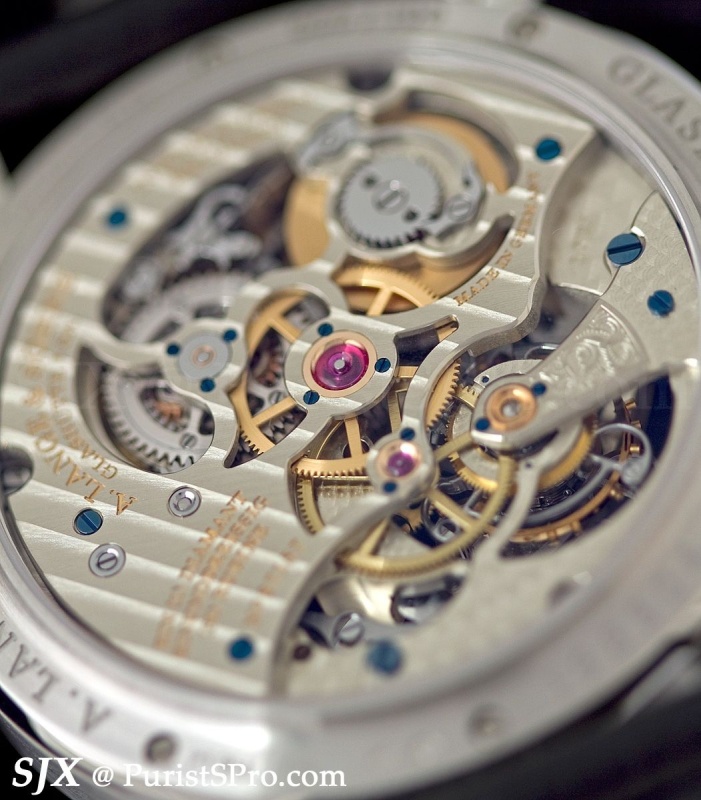 Compare this with the movement of the first Pour le Mérite tourbillon and you will see more openings exposing more of the movement. This continues a trend for Lange I have discerned in recent years, the desire to expose more of the movement, both on the front and the back.