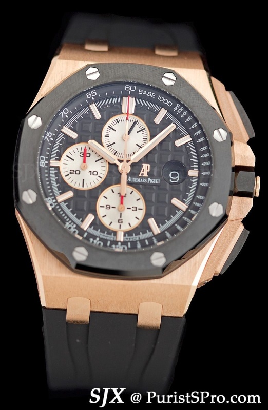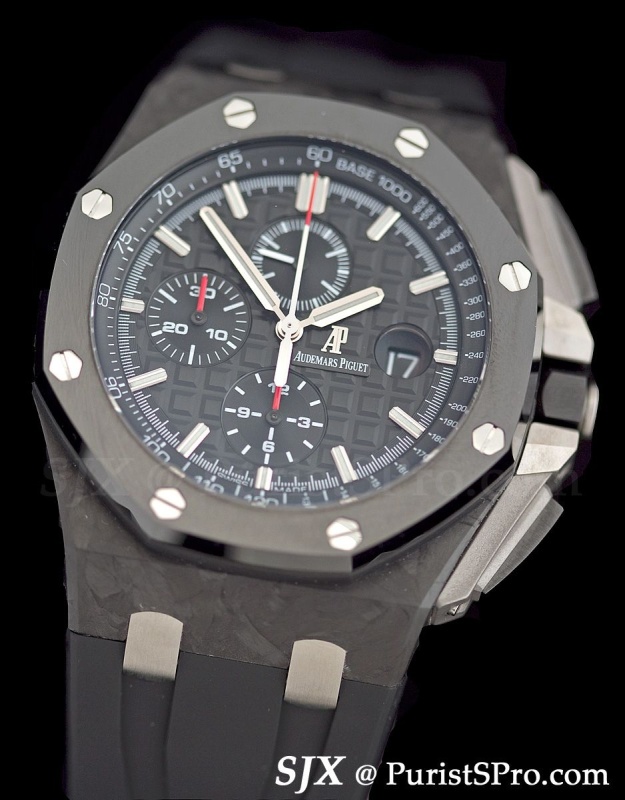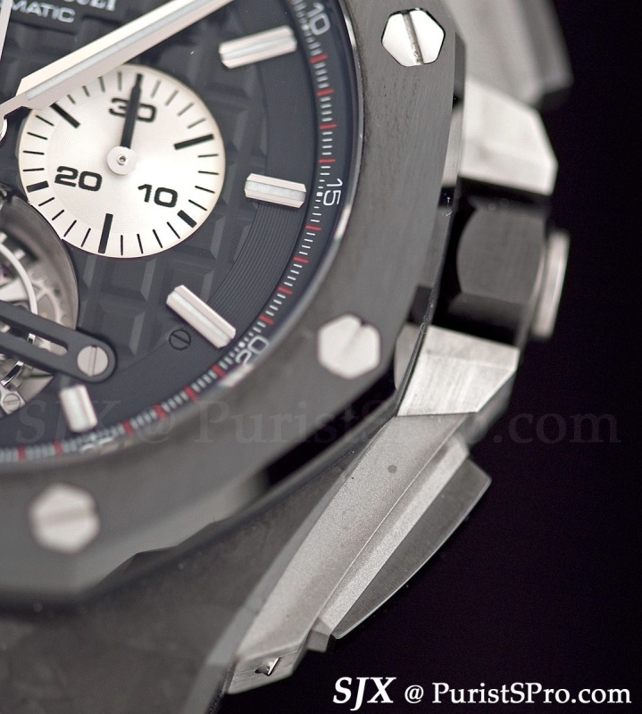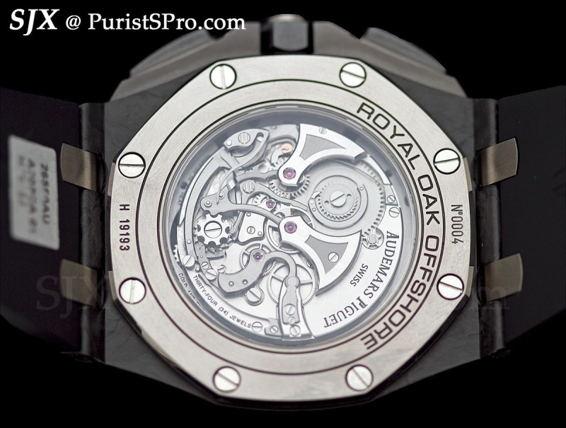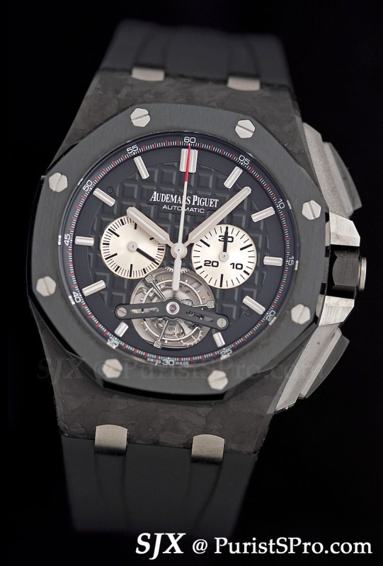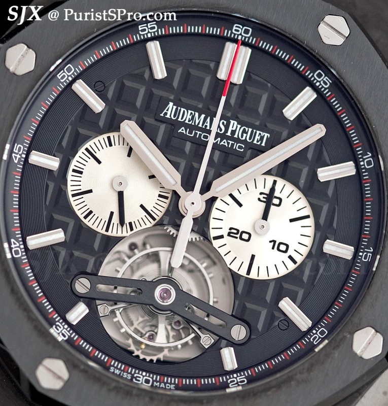 For those with a bigger pocket book but similarly sized wrist, the new Offshore Tourbillon Chronograph is also 44 mm. Turn it over and you get the unexpected.