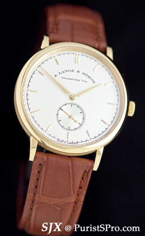 Also hand-wound is the entry level Saxonia which is a modest 37 mm in diameter. Inside sits the calibre 941.1 from the old 1815. This is available in three colours of gold.
