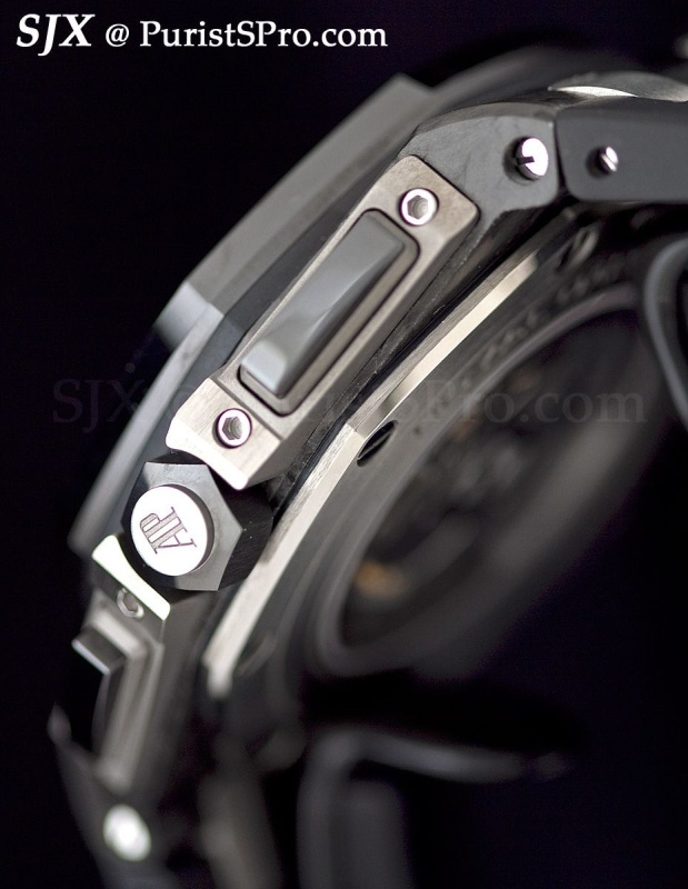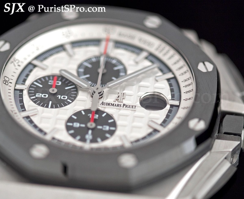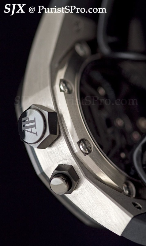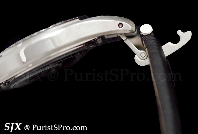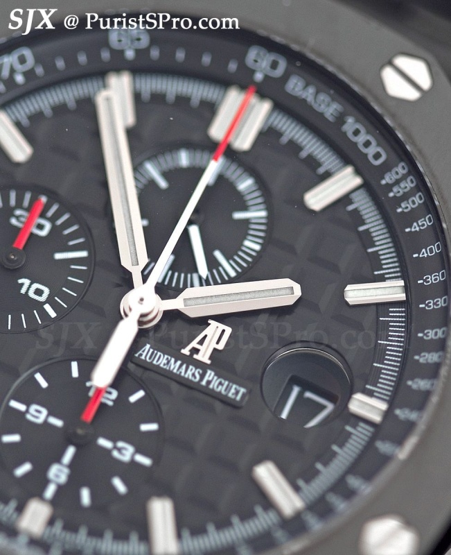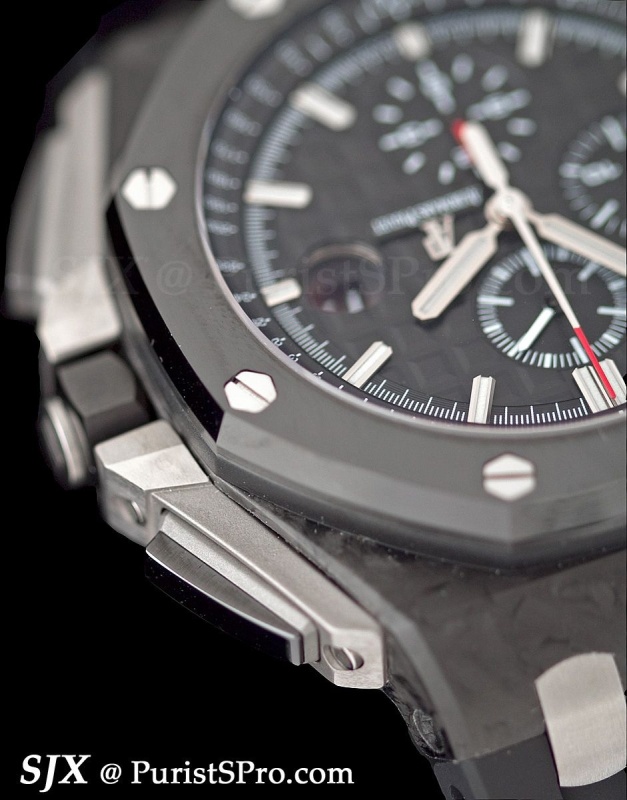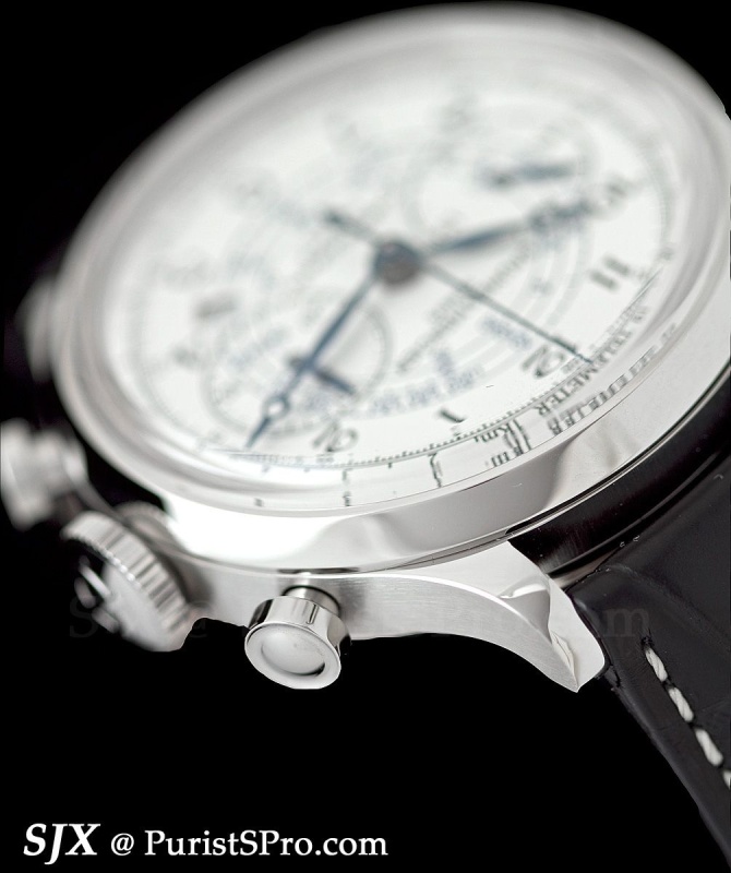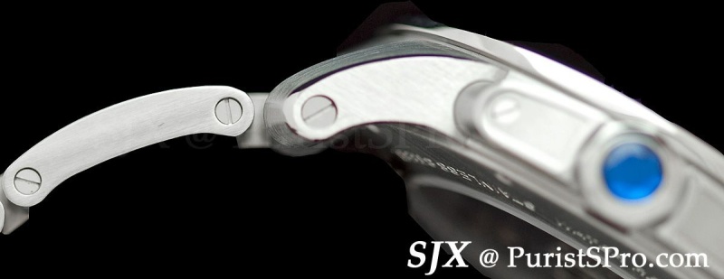 The crown guards and pushers are especially prominent and give the watch an aggressive stance which is somewhat contrasted by the clean dial.