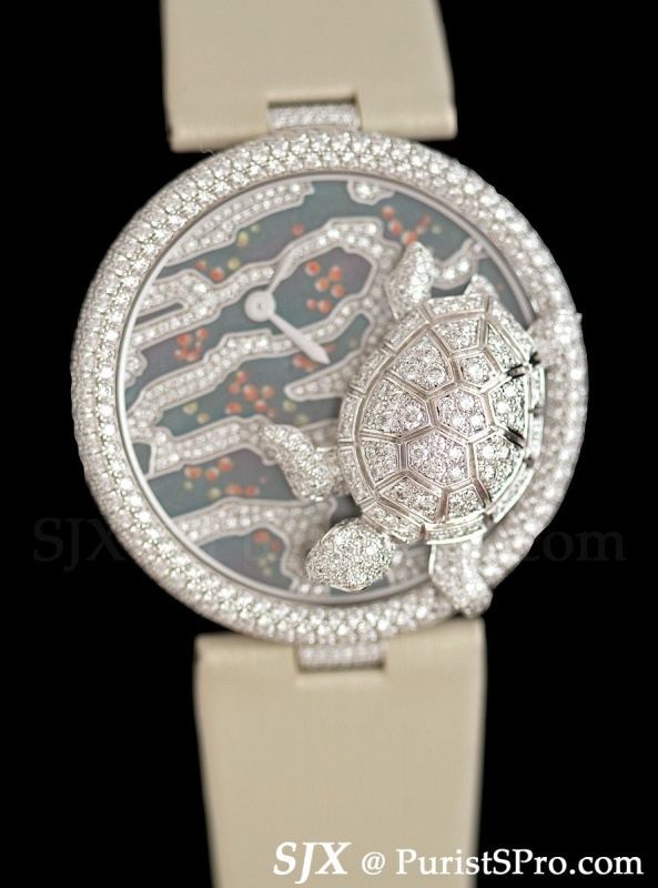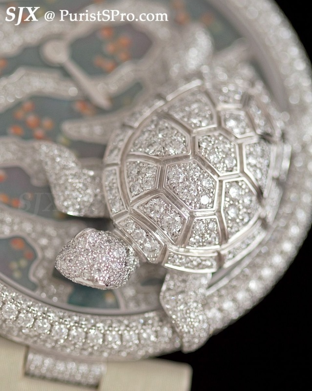 Cartier presents a slew of jewellery watches each year so we’ll just cover a few highlights. First is a couple from the Cirque de Animalier range: a bird, a lizard and a turtle.