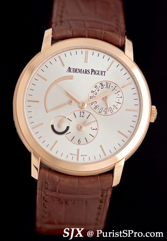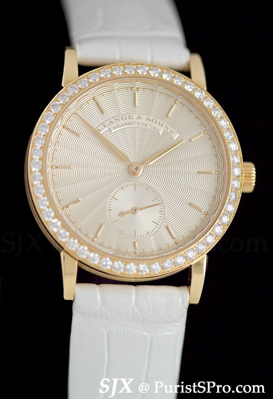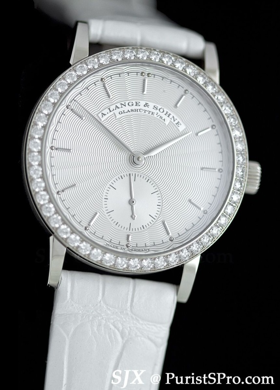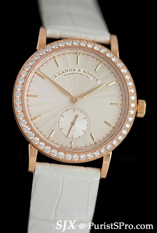 Ladies get the JA Small Seconds in white or pink gold, with or without diamond bezel.