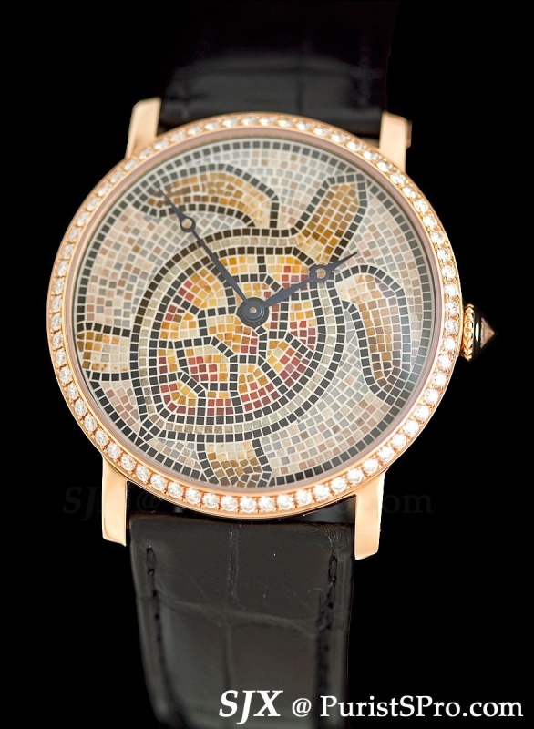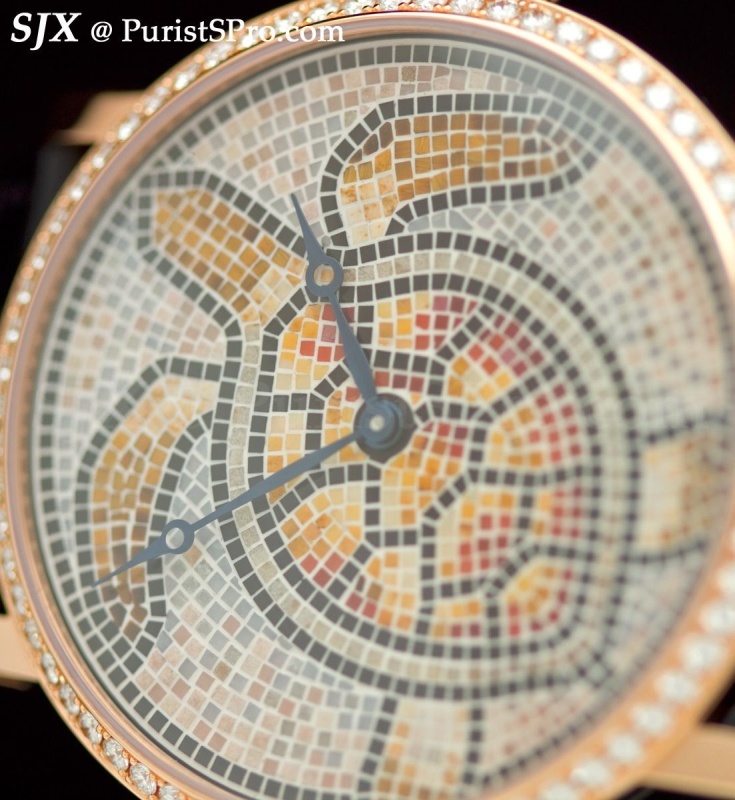 Aside from the Fine Watchmaking range, which will be covered further down, Cartier also beefed up its Metier d’Art collection. As the name suggests, the watches are decorated with a variety of artisanal techniques – enamelling, marquetry and mosaic.