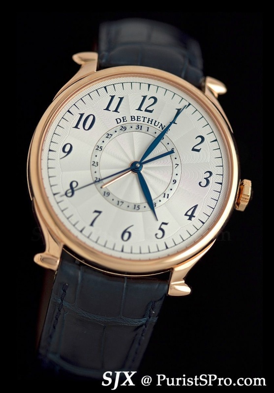 De Bethune unveiled three new models: the DB10, DB25T and DB28. With silver guilloche dial and blued steel hands, the DB10 is a look back at the first De Bethune models. It is also De Bethune new entry level piece, though it still features the in-house automatic calibre now fitted with an interesting regulator.