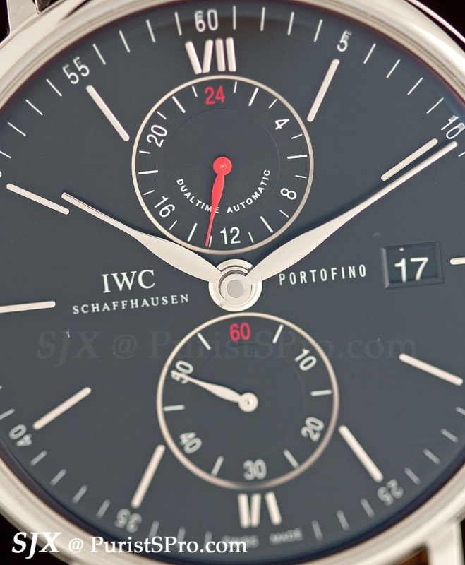 Also new is the Portofino Dual Time. Like the 8 days Portofino this too is large at 45 mm and similarly useful with a second time zone function and date. The movement is automatic with a three day power reserve.