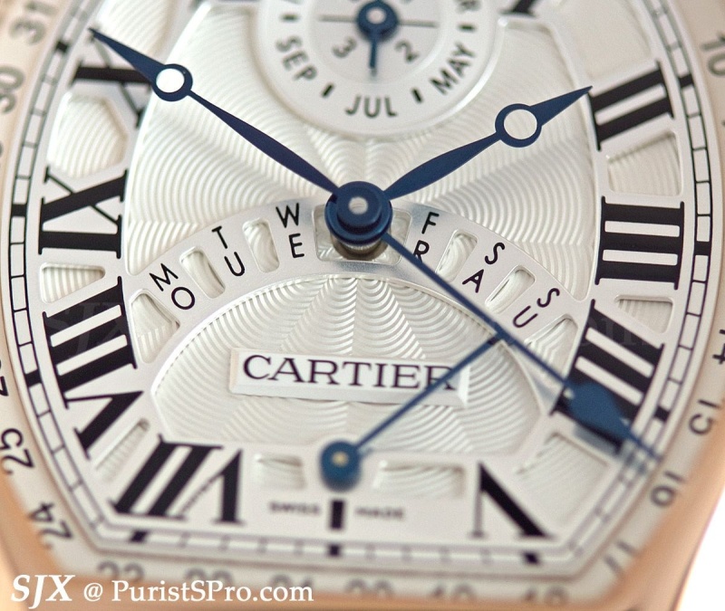 Notably the Tortue XL perpetual calendar, originally unveiled with an openworked dial, is now available with a silver guilloche dial in the classic Cartier style. This is highly reminiscent of the CPCP range, however, the new Tortue still retains the two level dial characteristic of the Fine Watchmaking collection.