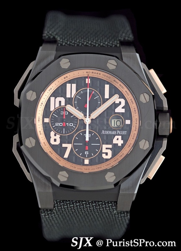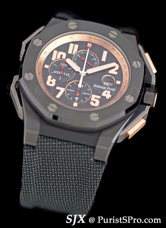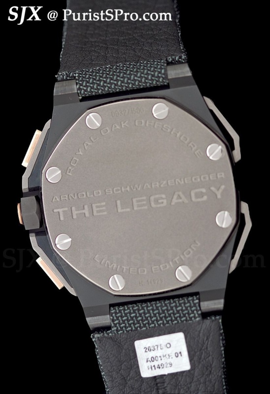 But the watches above are clearly for shrinking violets. For larger personalities AP has introduced the Royal Oak Offshore Arnold Schwarzenegger The Legacy. Though the Governator’s legacy is still fairly mixed, this watch makes itself absolutely clear.
