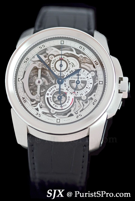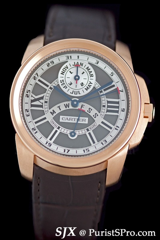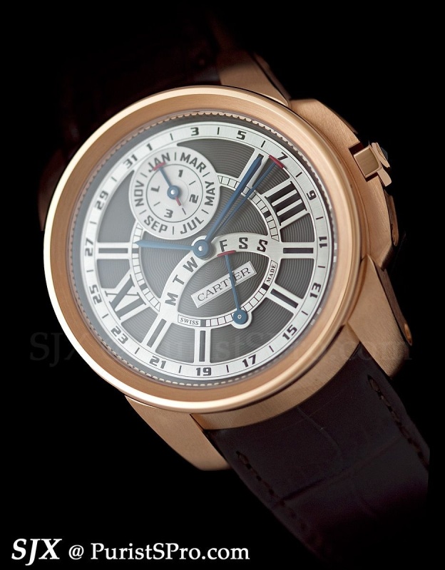 Three other high-end Calibre de Cartier models were also launched. The first is the perpetual calendar with retrograde previously available in the Tortue XL case.