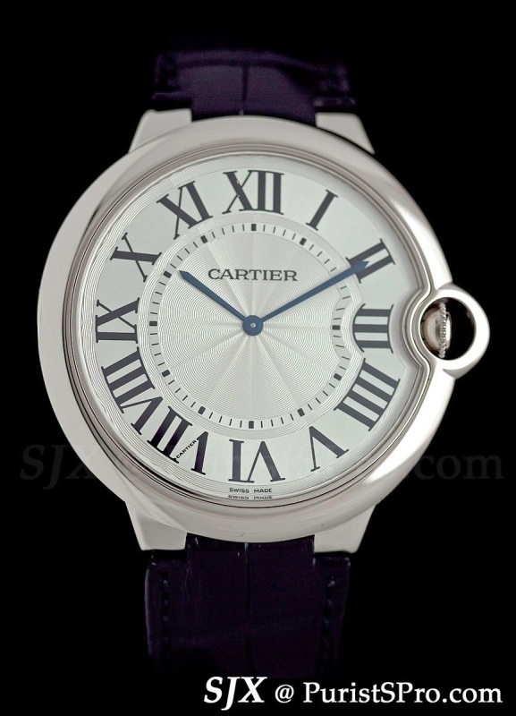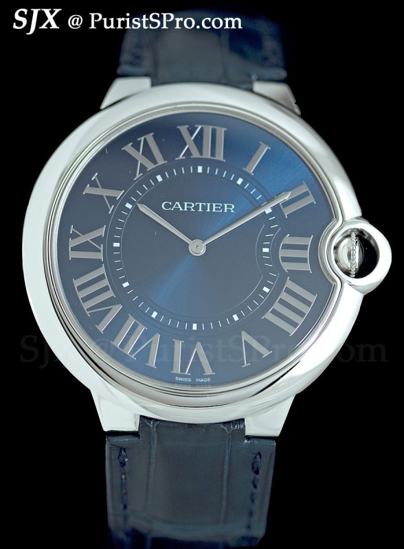 But Cartier sells even more Ballon Bleu and one of the notable additions to that range is the Ballon Bleu Extra Flat. Being very slim but 46 mm wide, this seems almost razor sharp. Though not part of the Fine Watchmaking range this is an upper end watch that would have been in the Collection Privee Cartier Paris had it not been discontinued. I believe the movement is a Frederic Piguet calibre. The blue dial version in platinum is limited to 99 pieces.